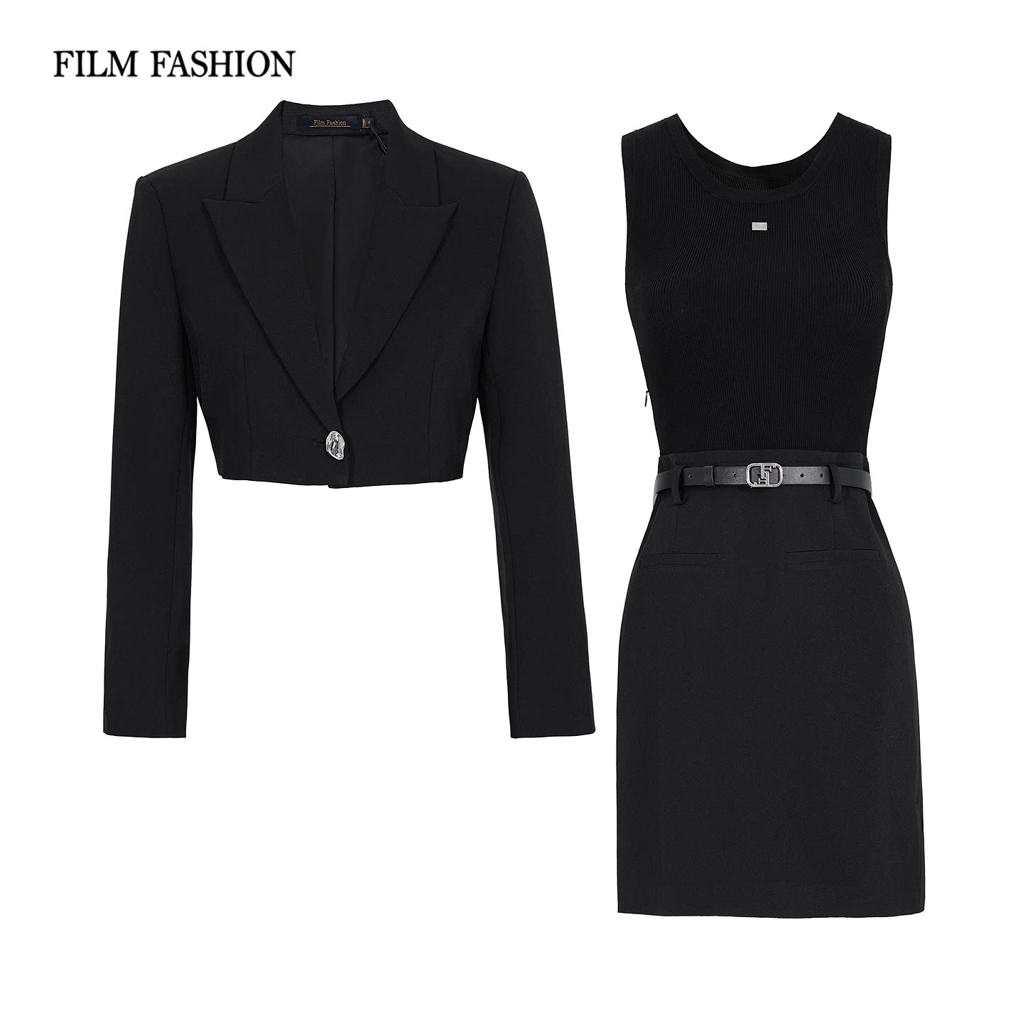 连衣裙套装 西装 早春新款 纯色女士 两件套 中长款 一电影一时装
