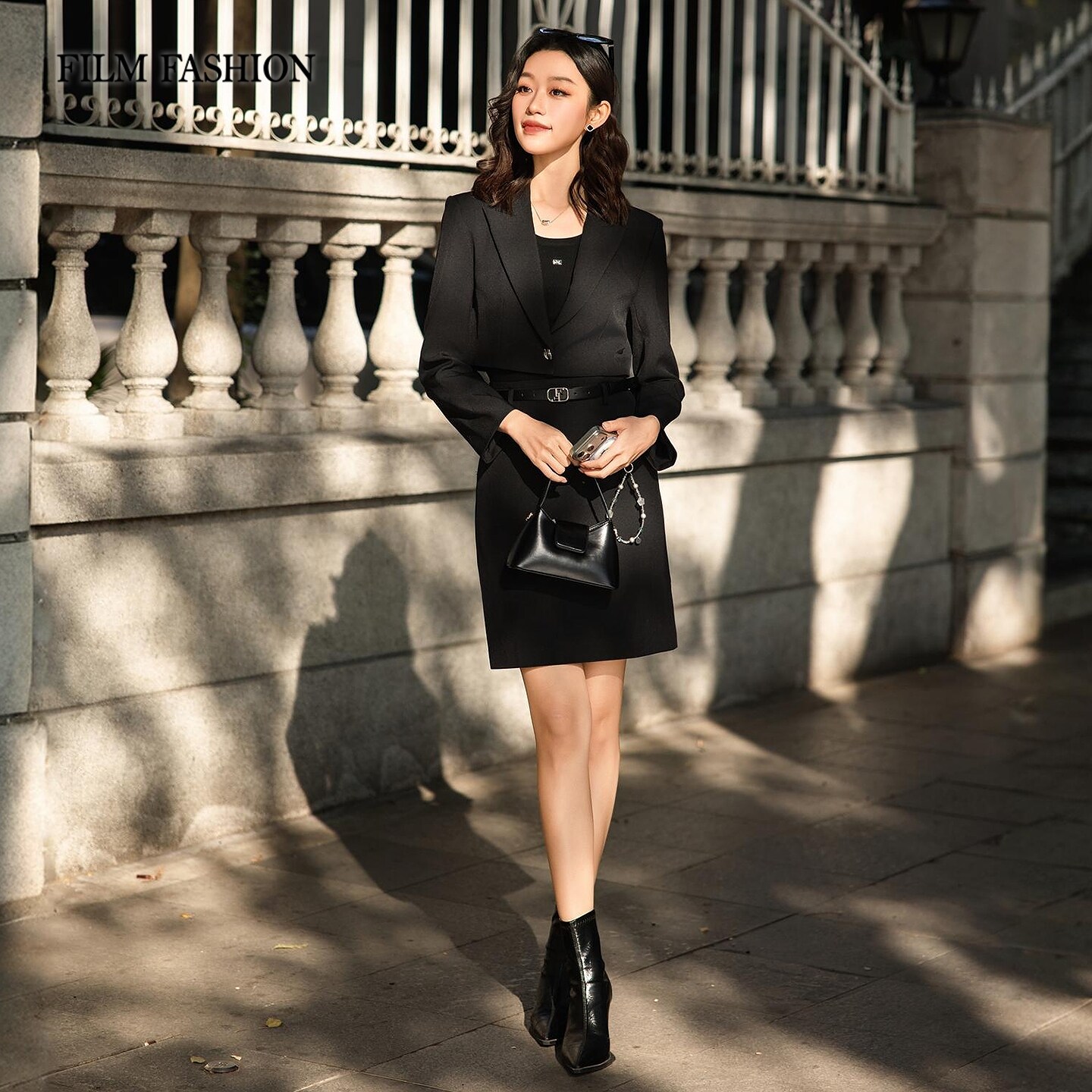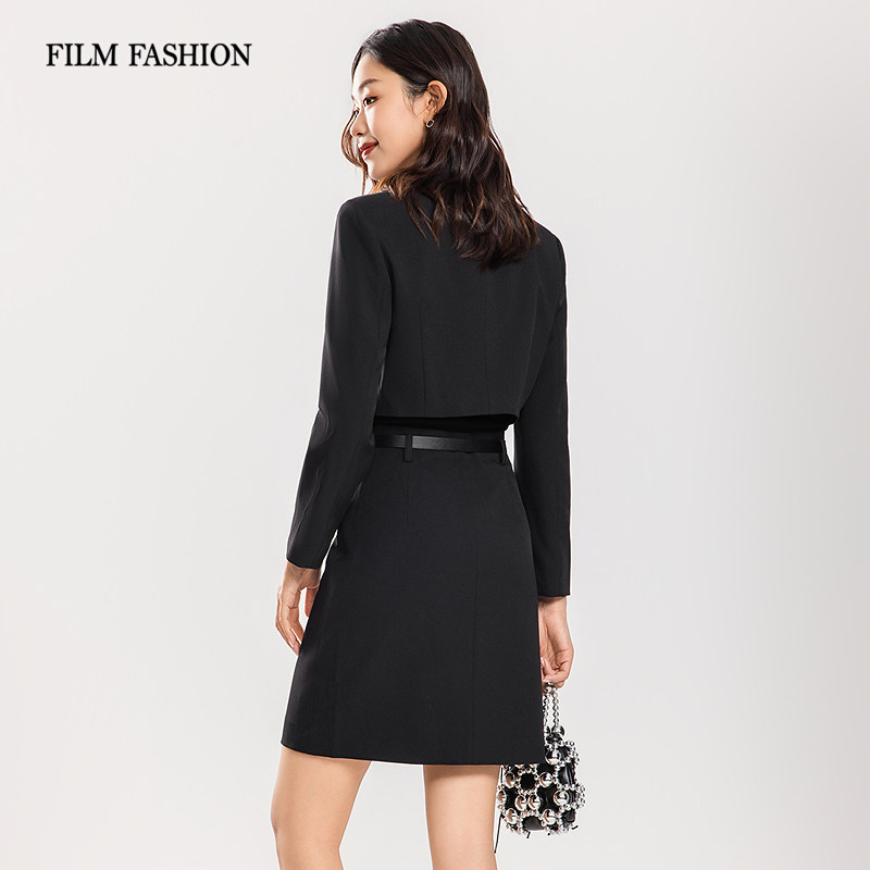 连衣裙套装 西装 早春新款 纯色女士 两件套 中长款 一电影一时装由