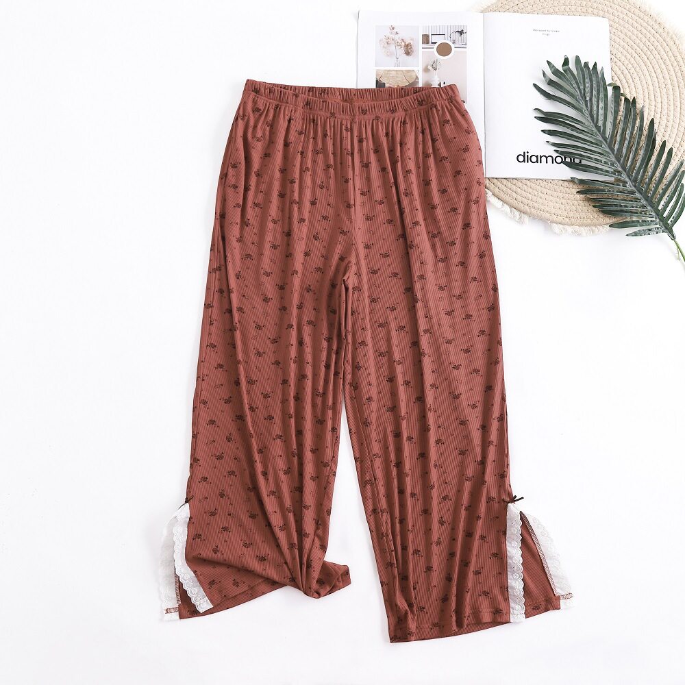 胖mm家居裤 加肥大码 新款 全棉纯蕾丝花边九分裤 休闲200斤 外穿睡裤