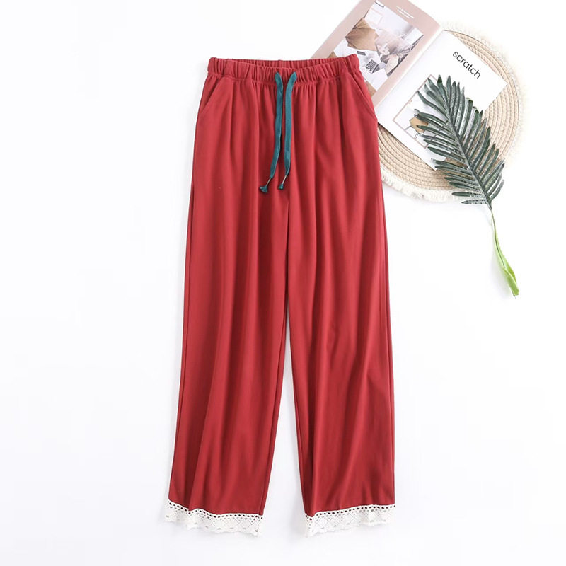 在耳边睡裤 女长裤 春秋复古宽松直筒家居裤 可外穿 双层纯棉纱布睡裤