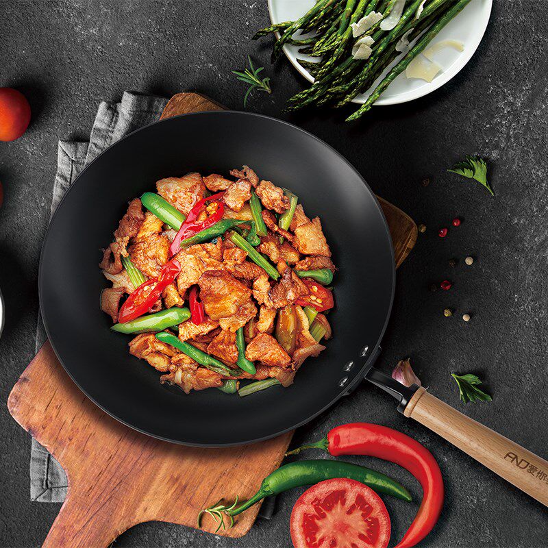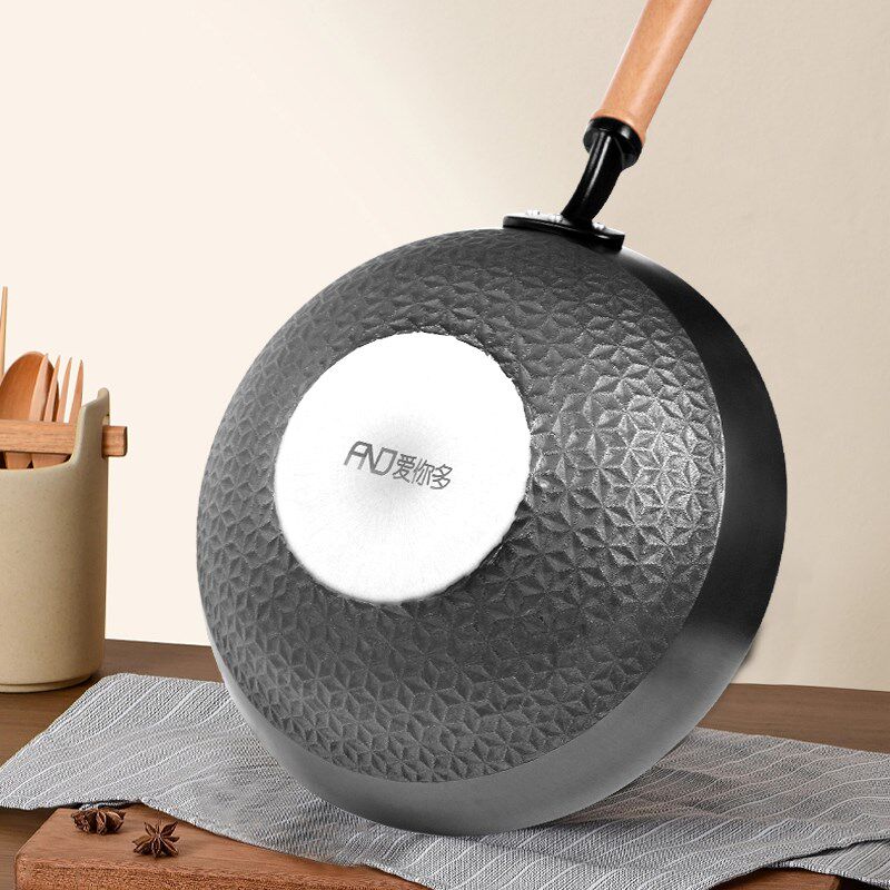 爱你多铸铁炒锅防锈生铁炒菜锅无涂层不粘老铁锅通用 名匠极香