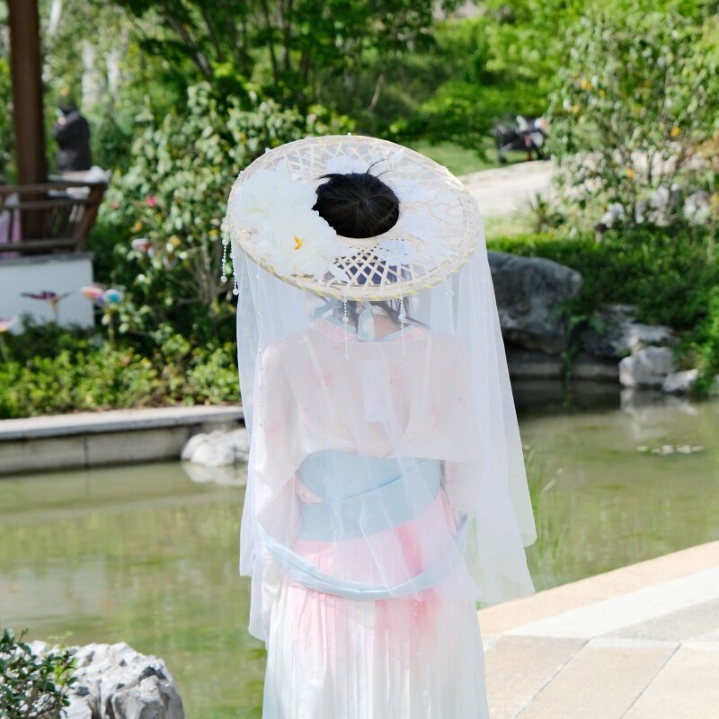 新款 汉服斗笠帽子遮脸面纱头纱遮阳便携帷帽幕篱仙侠走秀道具 古装