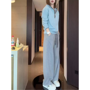 高级感慵懒风休闲套装 运动两件套 女春秋半拉链连帽卫衣垂感阔腿裤由