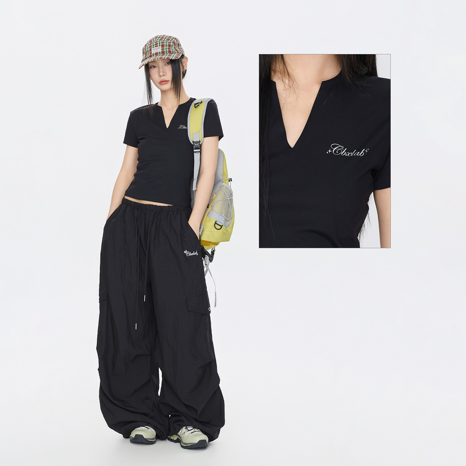 CBXLAB街舞潮牌V领高弹辣妹春夏透气抑菌短袖 高街上衣女 性感修身由