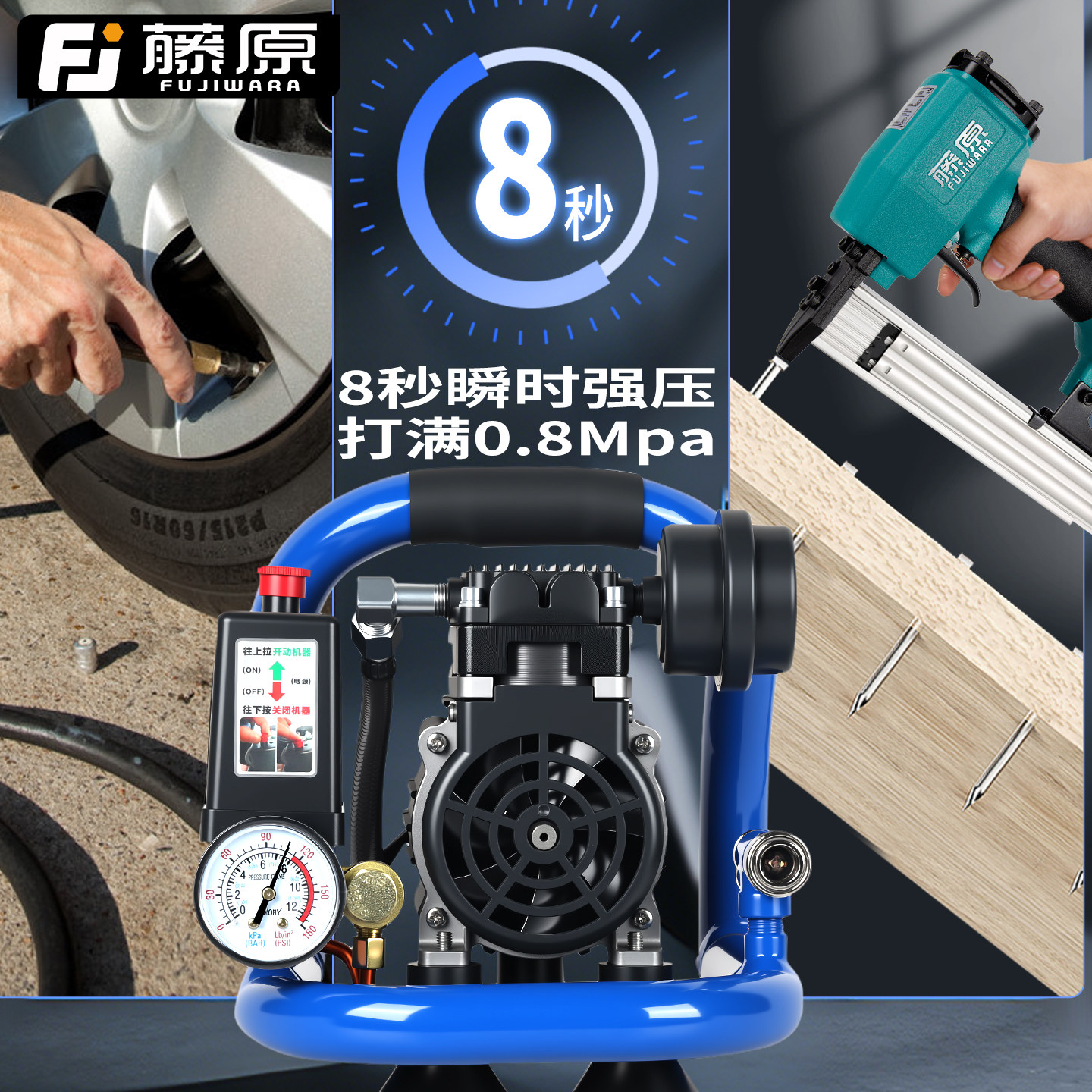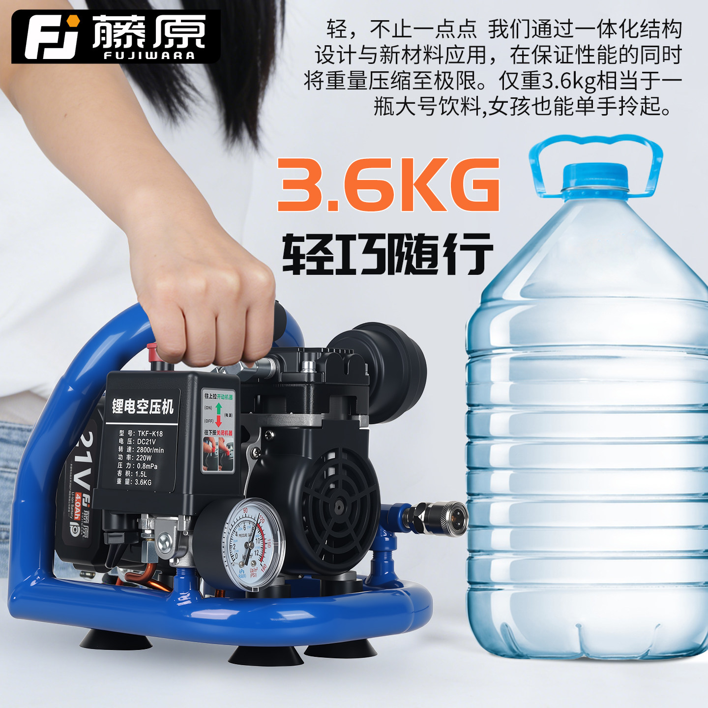 小型低音空气压缩机迷你充气泵 藤原无刷锂电空压机打气泵便携式