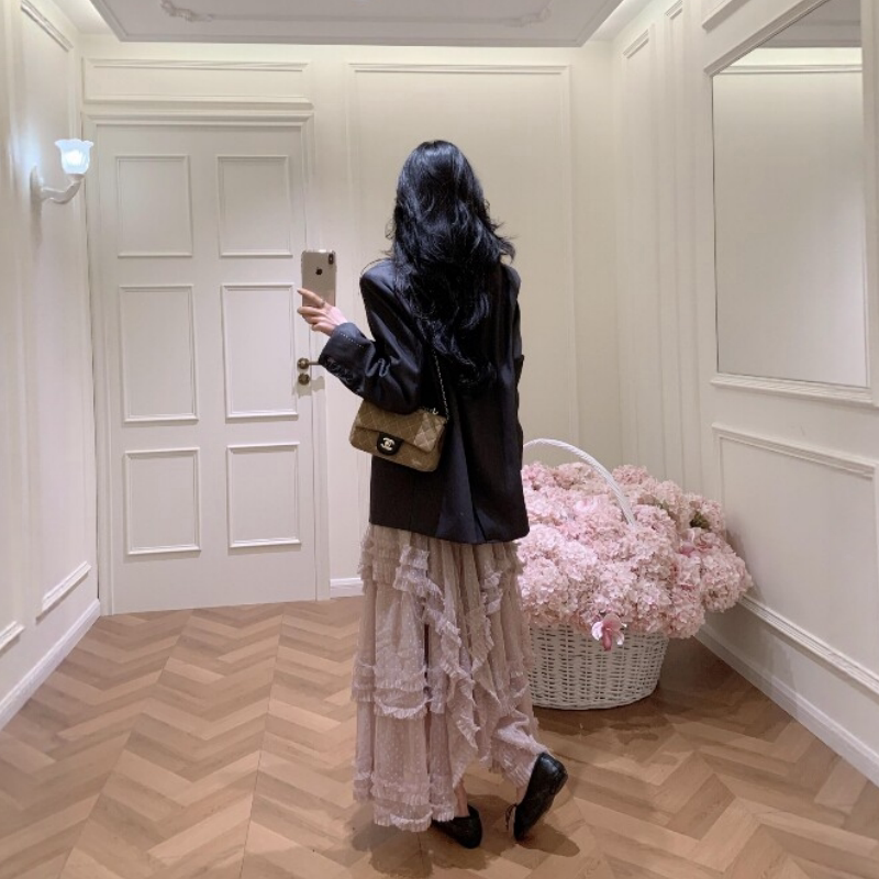 高级感时尚 外套女春季 氛围感小众别致气质半身裙两件套装 宽松西装