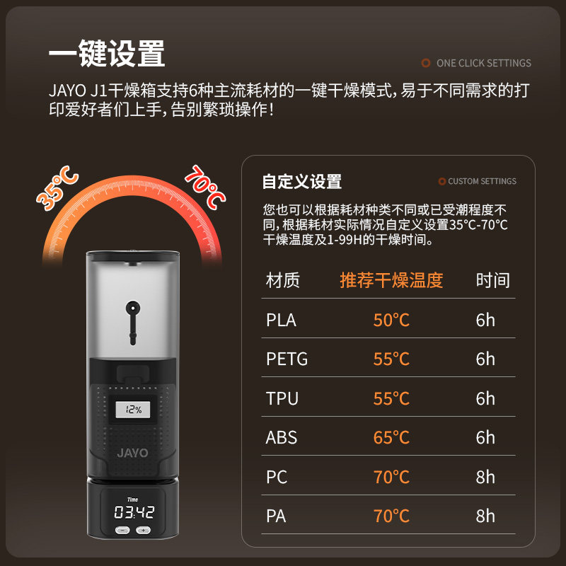 为您提供商品防潮防霉防尘持续烘干储存盒 JAYO 3D打印耗材干燥箱J1分体式 耗材烘干箱密封储存 PLA加热除湿边烘边打 PETG的详细介绍,