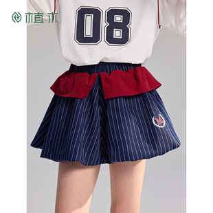 女童半身裙学院 植木 红序苞汀 条纹花苞撞色短裙 新 青少年夏季由