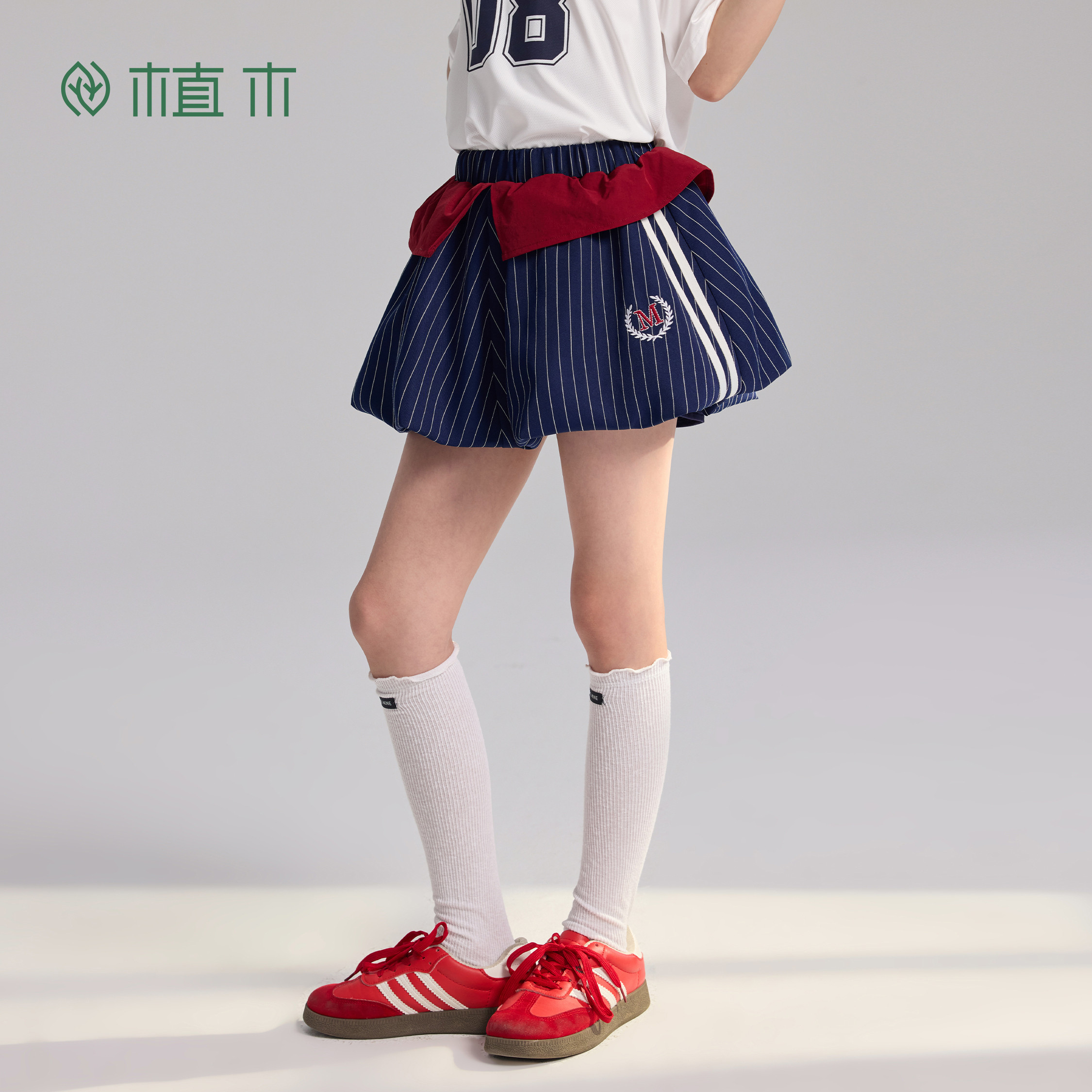 为您提供商品女童半身裙学院 植木 红序苞汀 条纹花苞撞色短裙 新 青少年夏季的详细介绍,