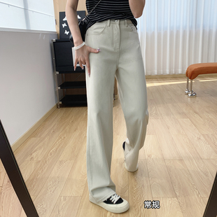 女高腰宽松显瘦休闲百搭直筒长裤 白色阔腿牛仔裤 pusumede自留款