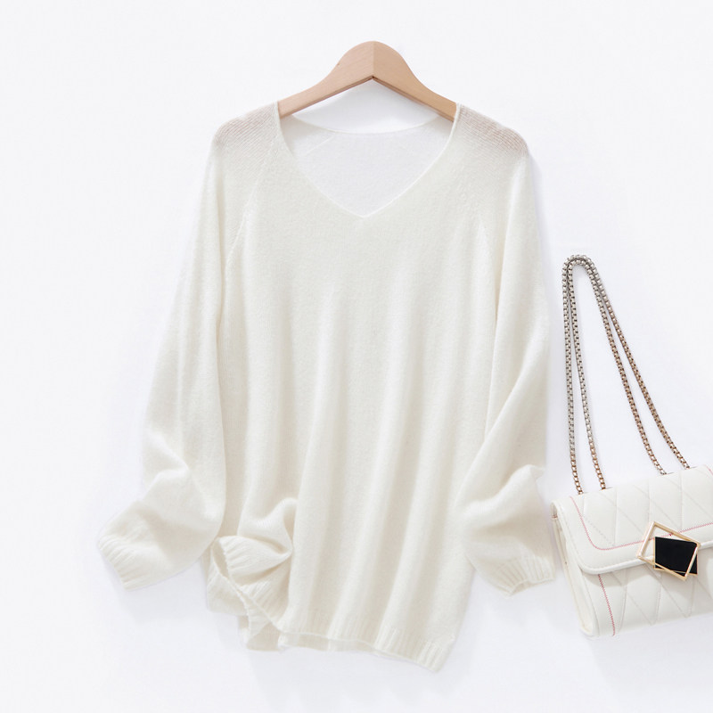 为您提供商品女慵懒风软糯百搭上衣 桑蚕丝山羊绒毛衣薄V领糖果纯色系针织罩衫的详细介绍,