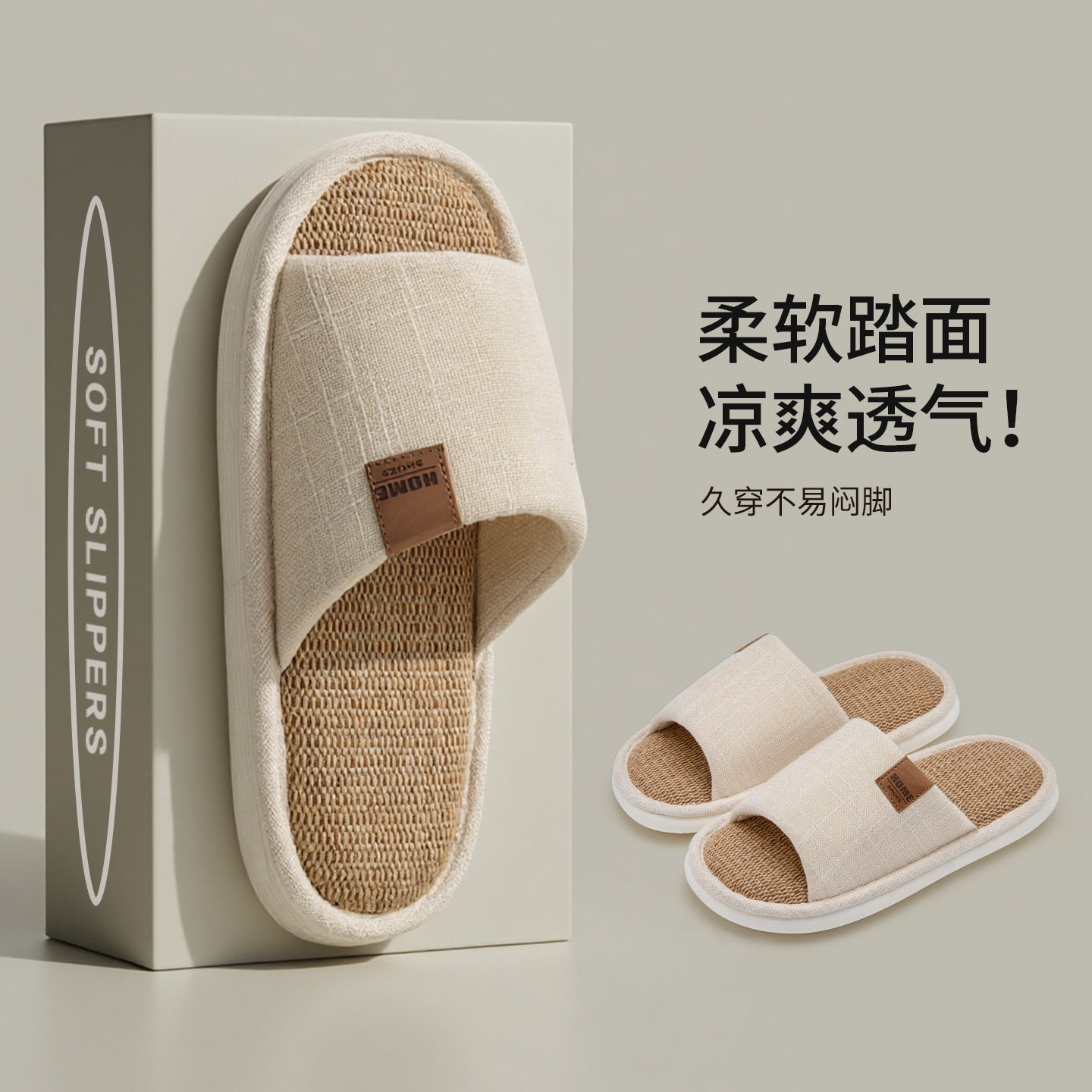 夏季 2025日式 复古亚麻特价 拖鞋 室内居家透气静音防滑 情侣家居新款