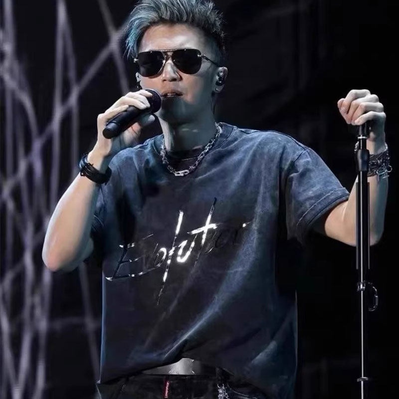 反光亮面水洗做旧潮流短袖 T恤 同款 谢霆锋进化演唱会Evolution经典由
