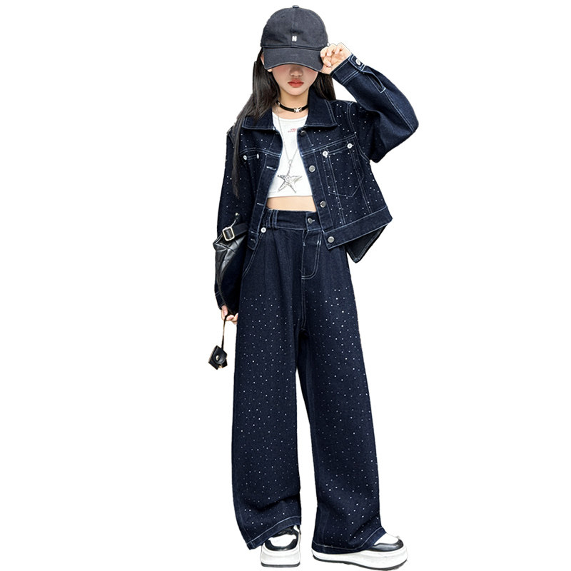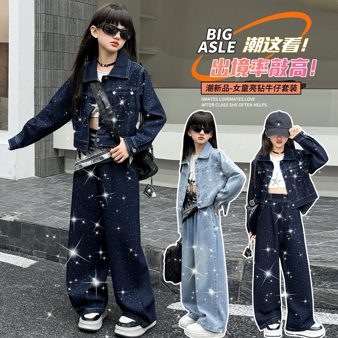 为您提供商品女童烫钻牛仔套装 春秋装 洋气时髦中大童牛仔外套两件套装 2026新款的详细介绍,