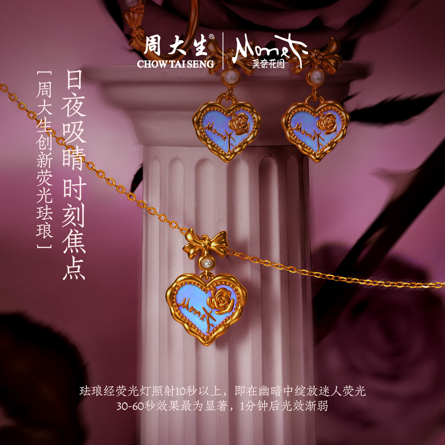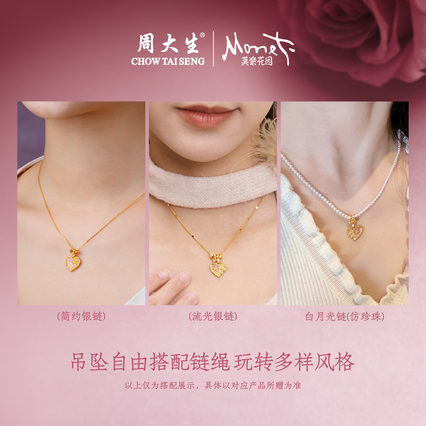 为您提供商品周大生黄金项链吊坠爱心玫瑰莫奈荧光珐琅足金挂坠女生生日礼物的详细介绍,