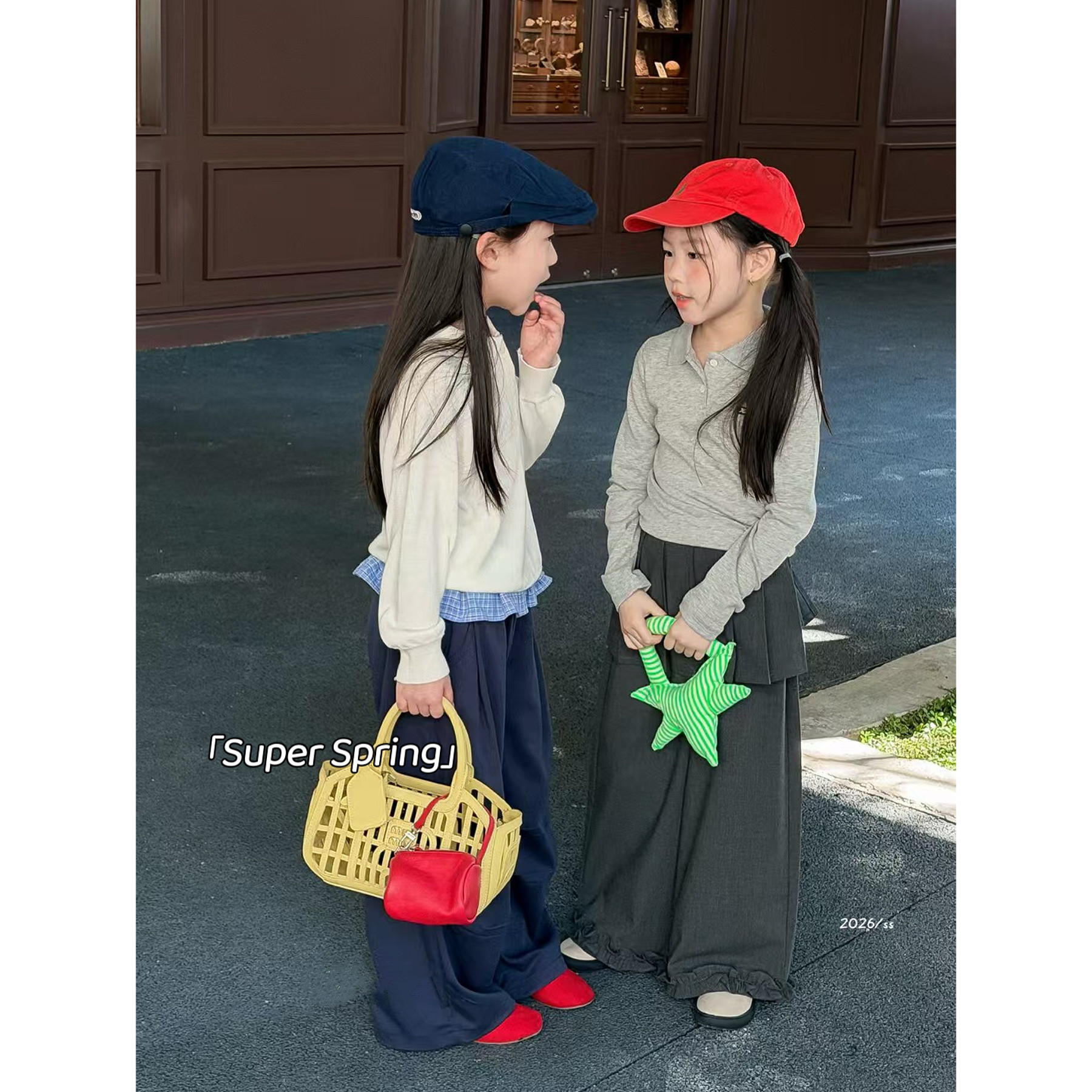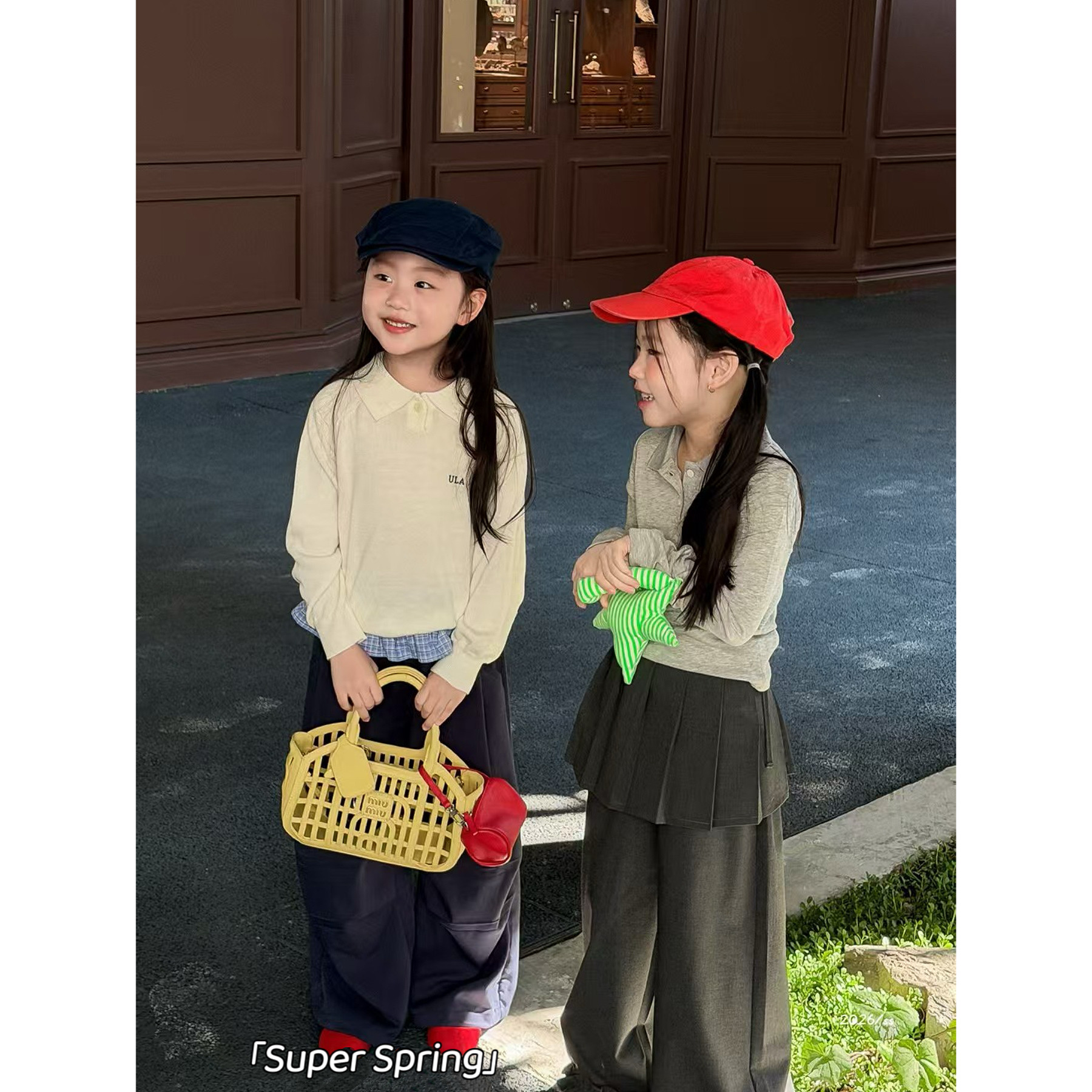 子围裙休闲裤 女童26春季 T恤上衣ins风格 字母刺绣POLO长袖 新款 韩版