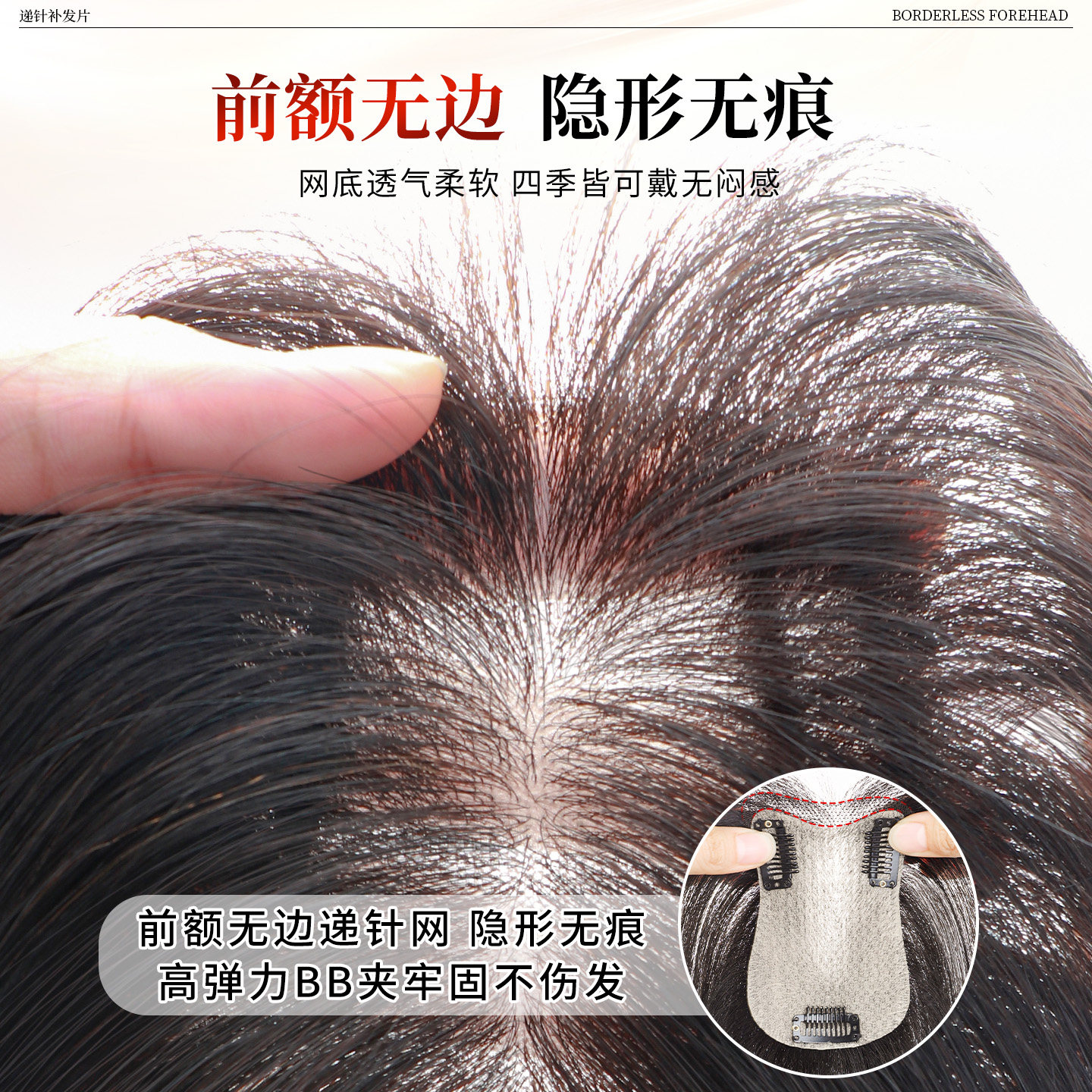 颅顶蓬松增发量遮白发自然隐形补发片 递针假发女片头顶真发一片式
