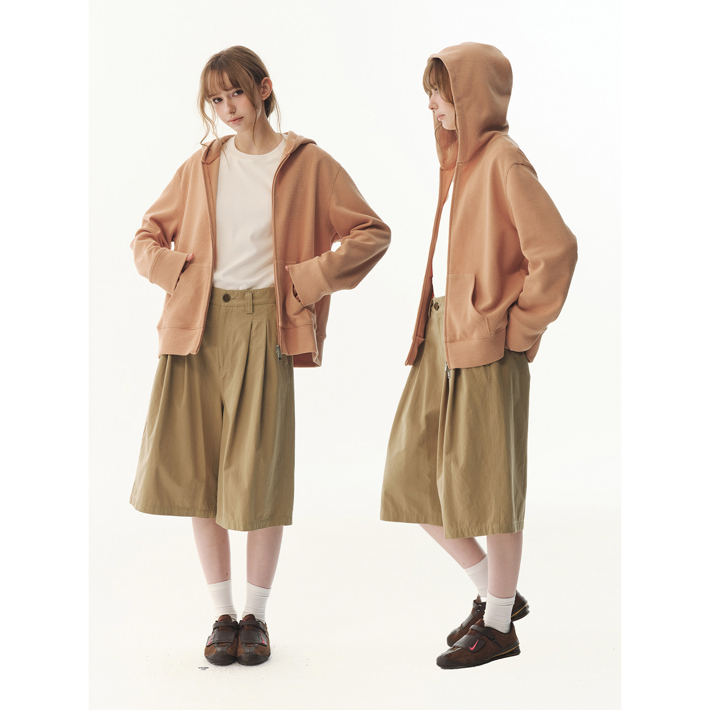 UNRETRO春秋美式 卫衣女宽松落肩Oversize拉链外套 华夫格连帽开衫