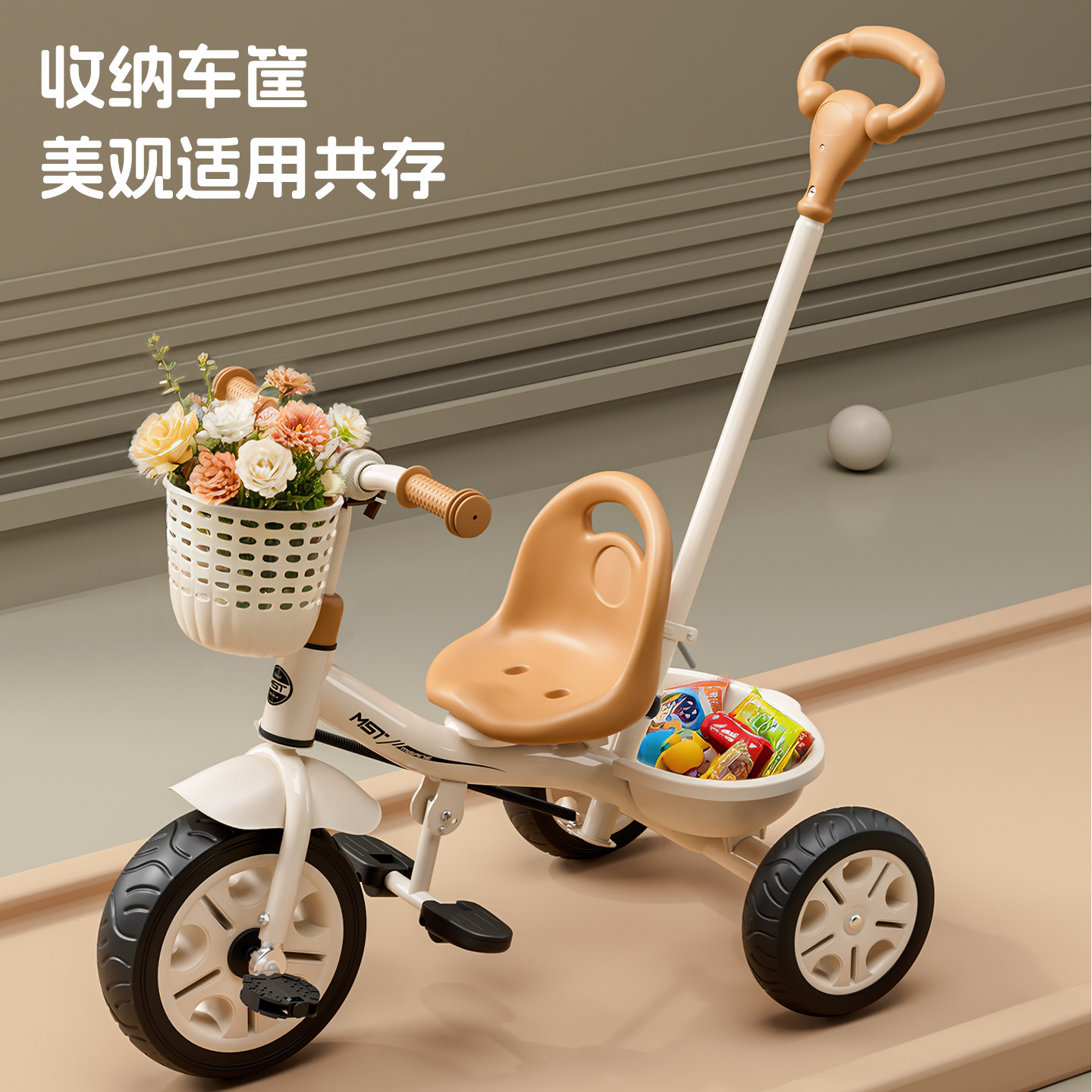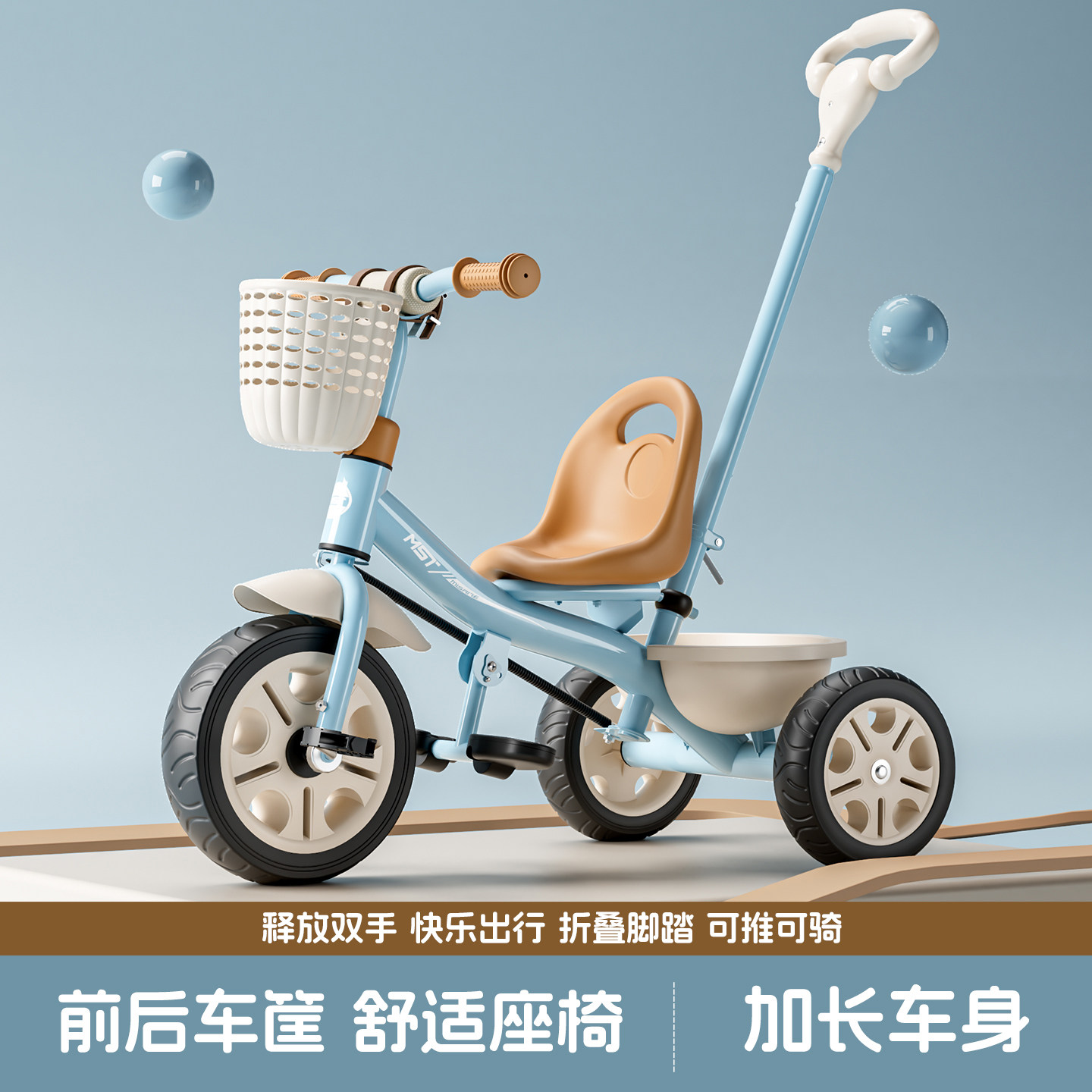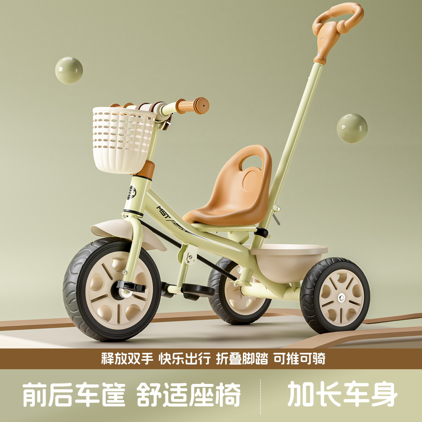 6岁宝宝手推车自行车小孩车子童车 米赛特儿童三轮车脚踏车1