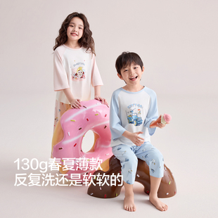 男童家居服春夏26新款 女童宝宝空调服 七分袖 红豆儿童睡衣纯棉套装由