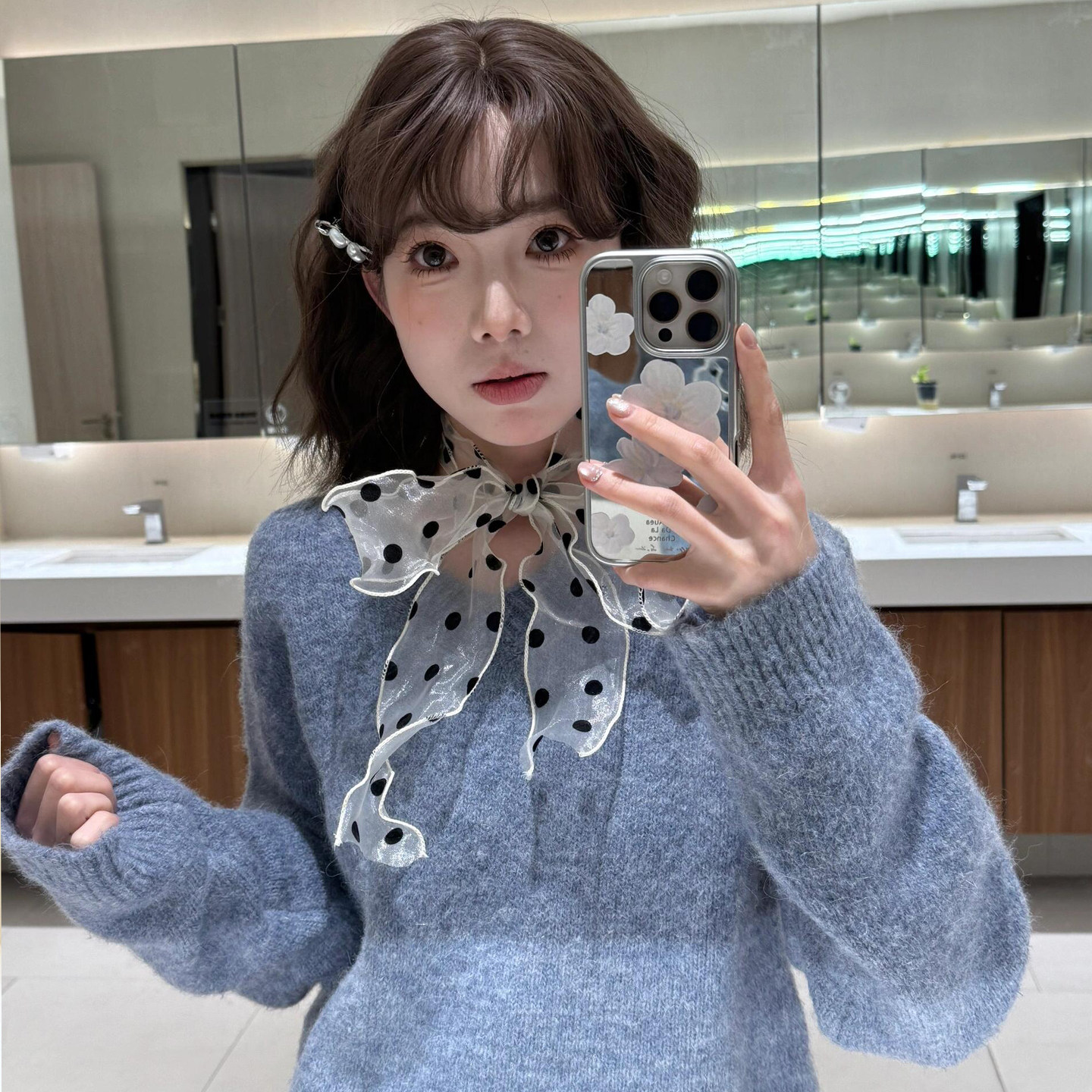 蓝色白色披肩外搭网红打结坎肩韩版 柔软空调房针织搭肩女 春夏薄款