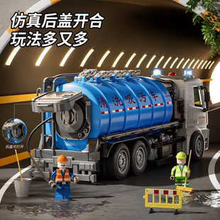 大号声光城市吸污车仿真儿童玩具车惯性水罐工程运输车环卫清洁车