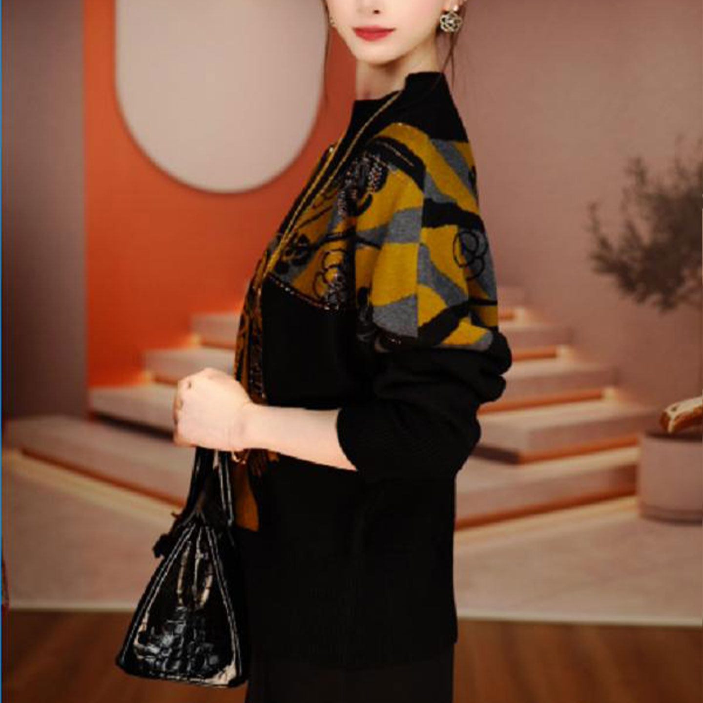 为您提供商品女2025冬季 洋气时尚 拼色提花长袖 针织衫 宽松显瘦百搭烫钻上衣 新款的详细介绍,