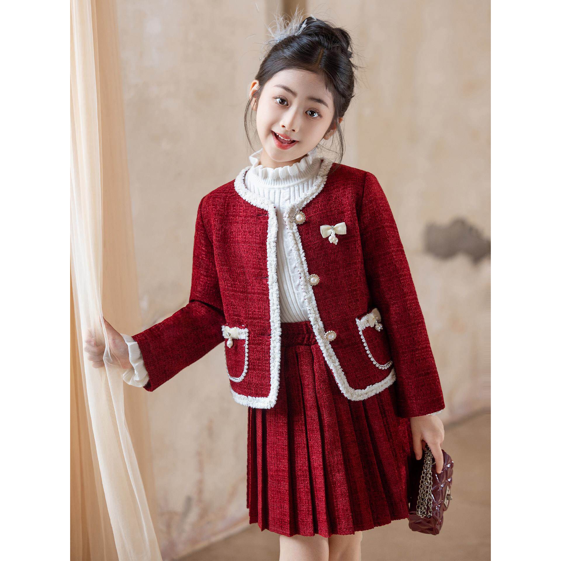 为您提供商品女孩冬装 裙子洋气儿童小香风两件套时髦 秋冬2025新款 女童红色套装的详细介绍,