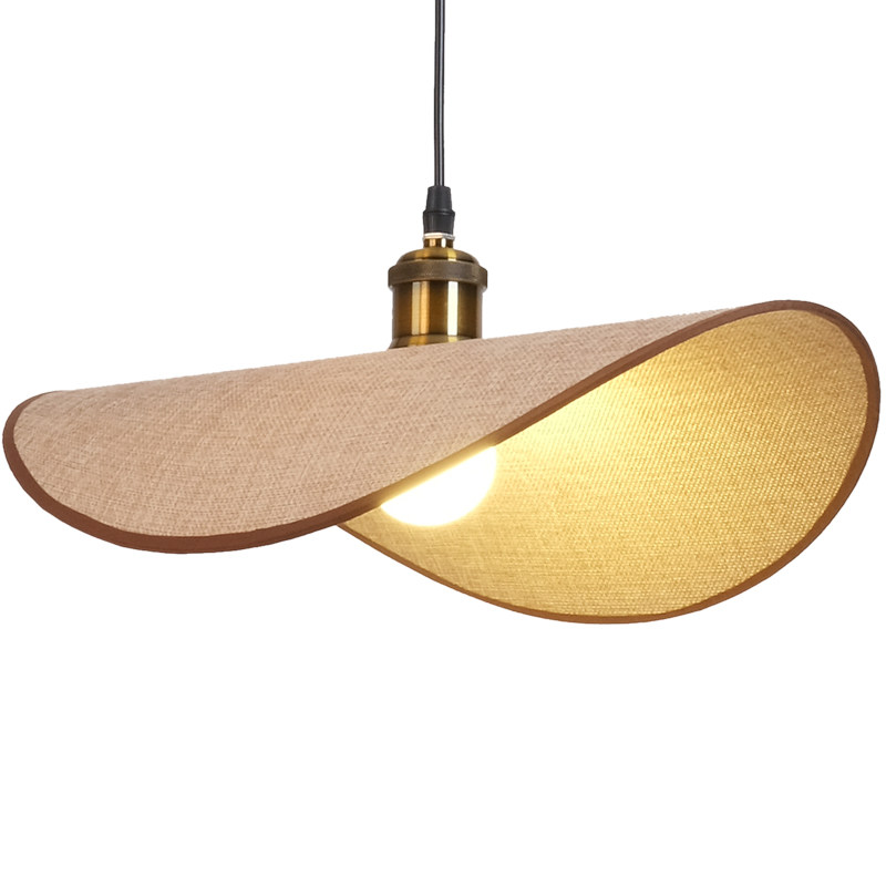 茶室餐厅民宿吧台卧室手工布艺灯具 侘寂风简约草帽复古吊灯新中式