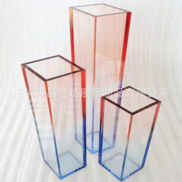 晶艺坊亚克力家具工厂亚克力彩色渐变花器透明彩色染色花