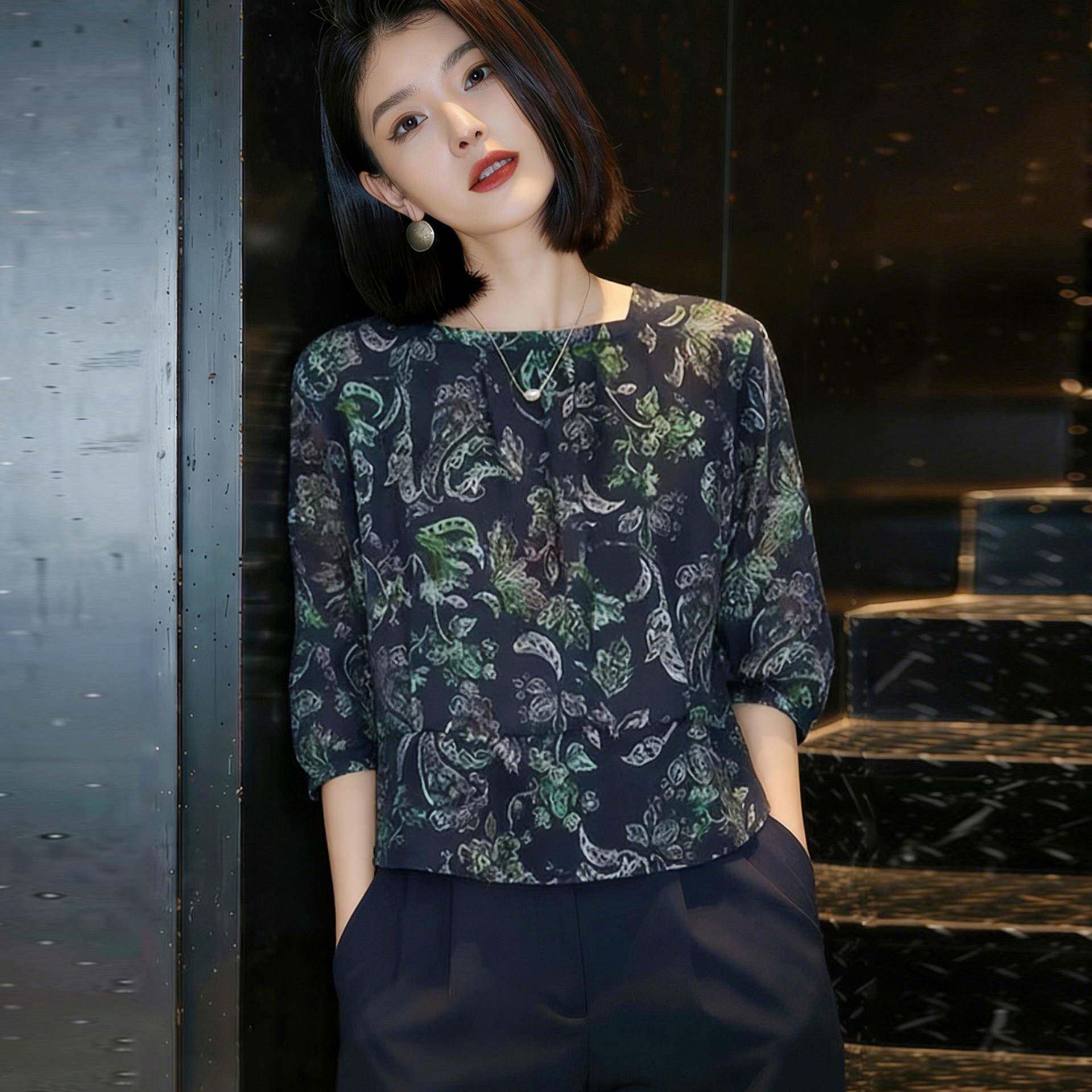 为您提供商品女士印花衬衫 新款 时尚 洋气宽松显瘦减龄休闲别致小0328e 2026夏季的详细介绍,