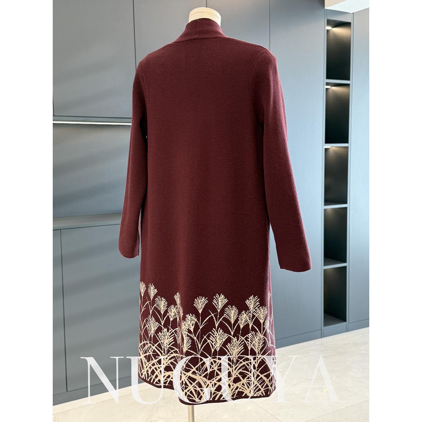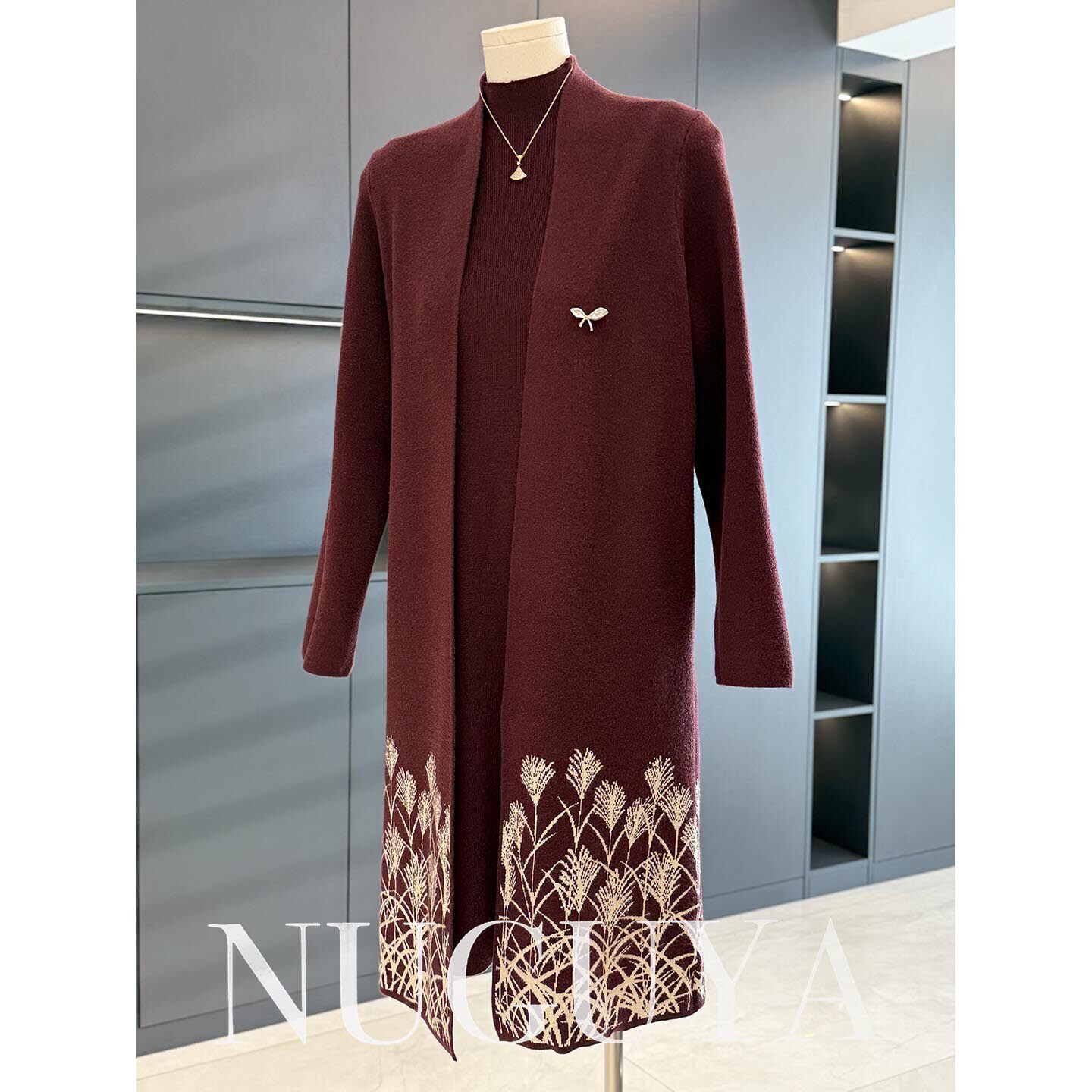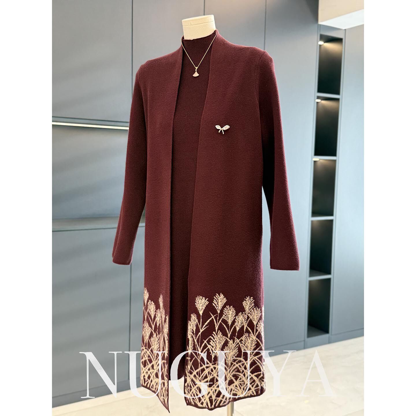 时尚 冬装 新款 气质妈妈毛衣裙两件套 洋气中老年针织连衣裙大衣套装由