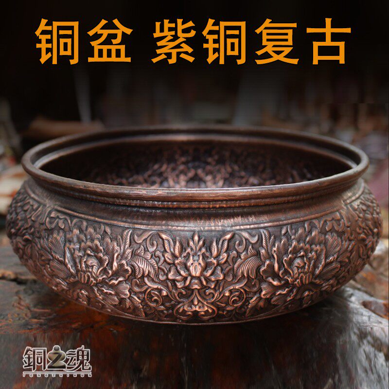 为您提供商品铜之魂 饰聚宝家用加厚圆形养鱼盆 盆洗脸洗脚火盆紫铜复古栽花装的详细介绍,
