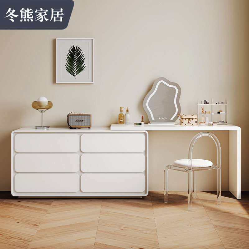 中古奶油风梳妆台卧室现代简约斗柜收纳柜一体床尾化妆桌 2026新款