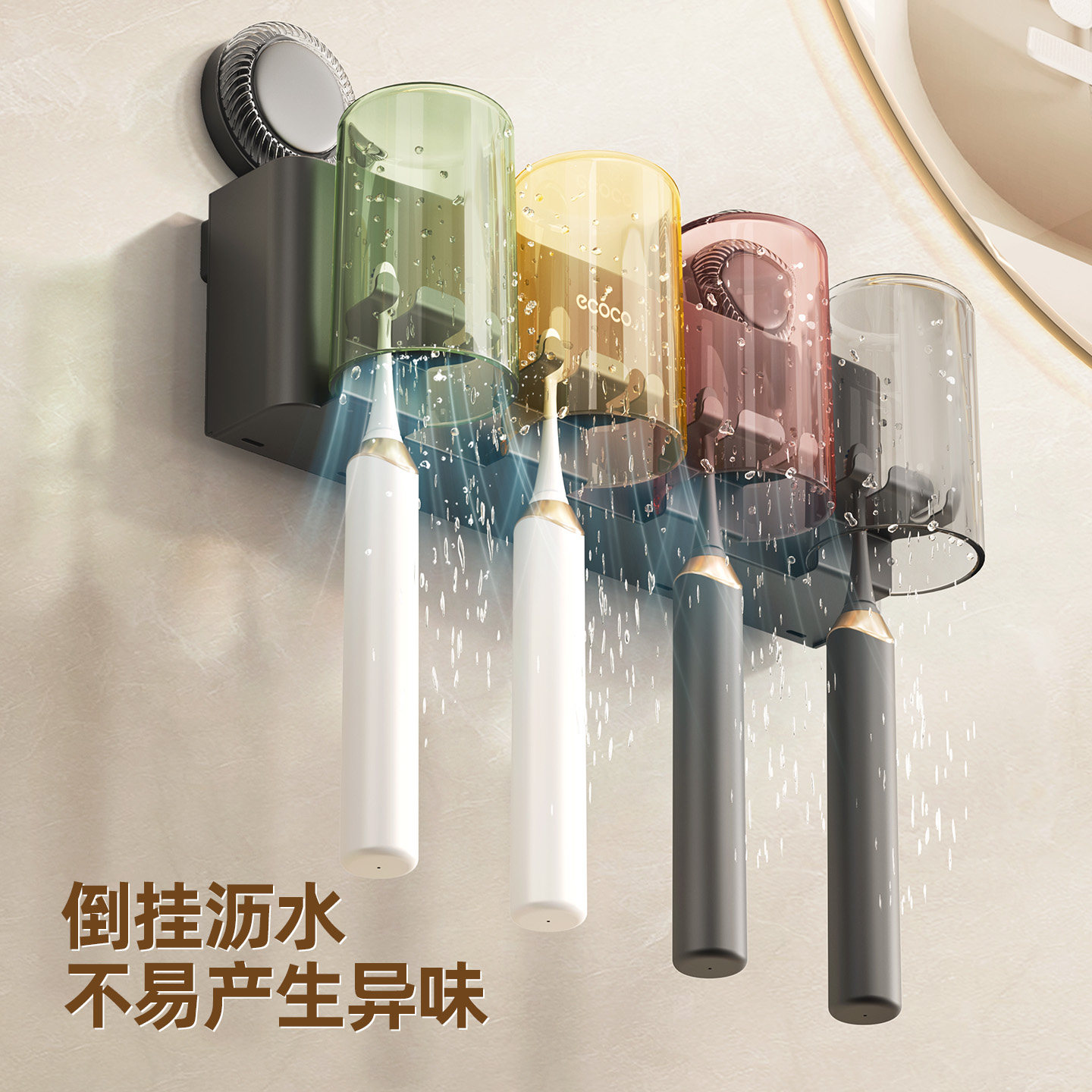 免打孔电动牙杯收纳漱口杯挂架牙刷架 ecoco吸盘牙刷置物架壁挂式