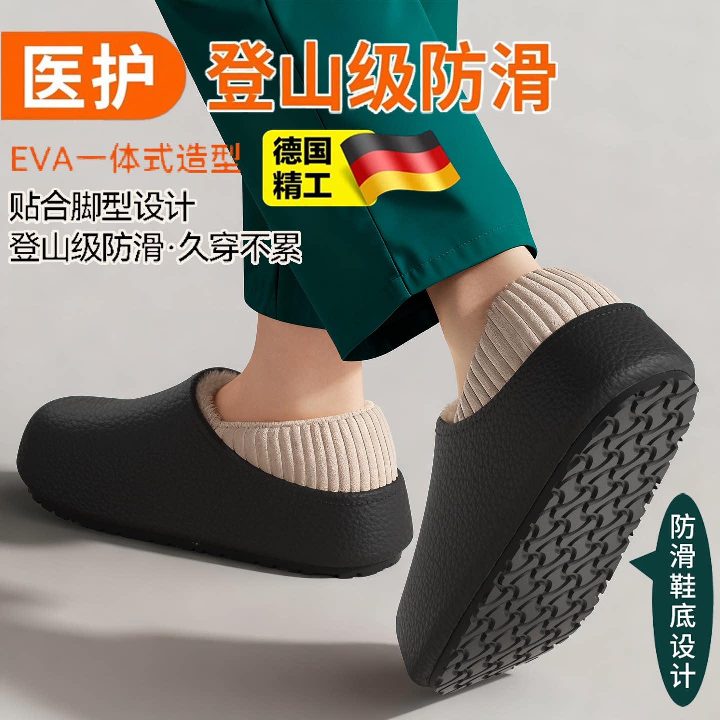 医护专用棉拖鞋 新款 外穿防滑厚底加绒居家保暖防水棉鞋 女包跟冬季