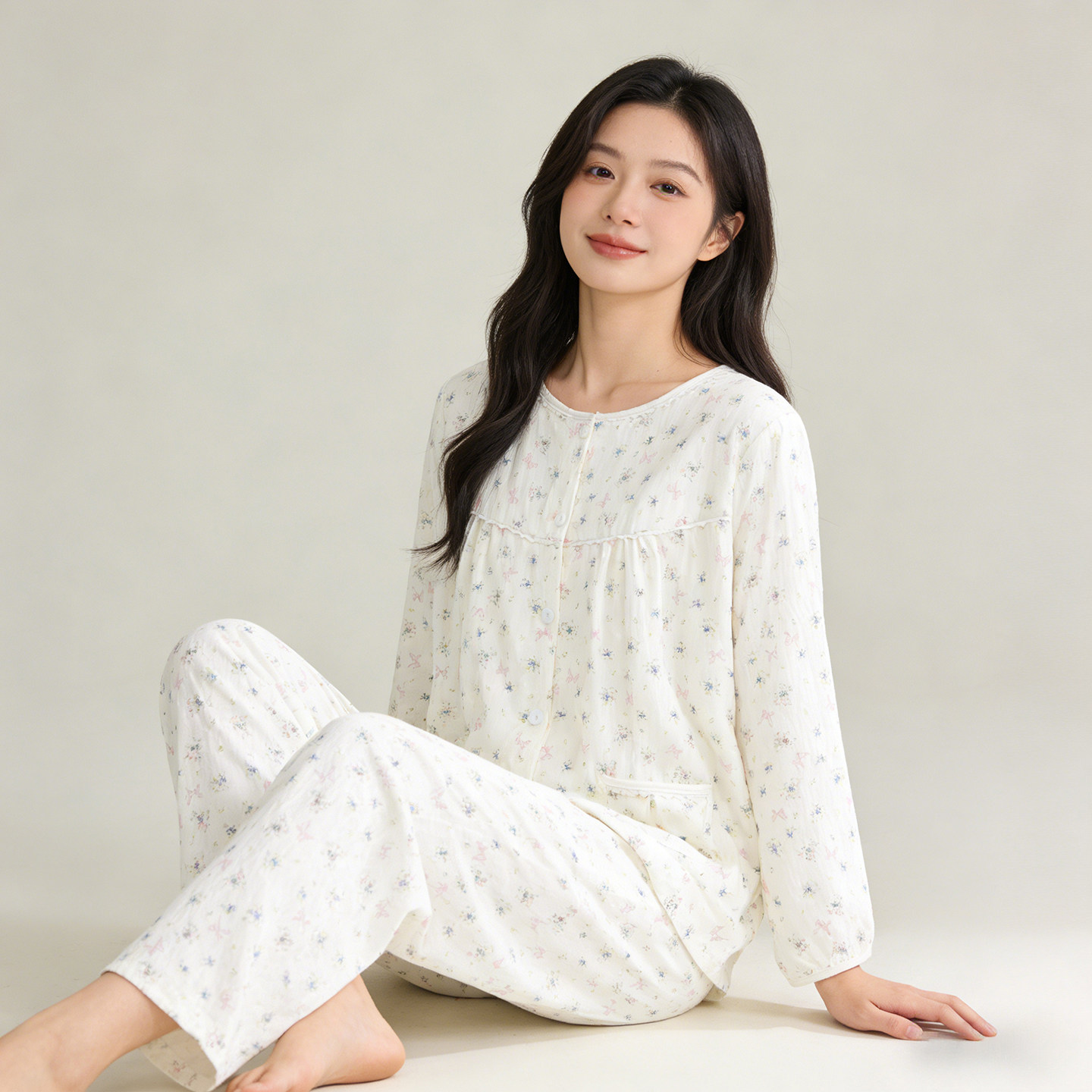 高级感家居服套装 浪莎睡衣女春秋款 秋冬季 2026年新款 纯棉长袖 薄款