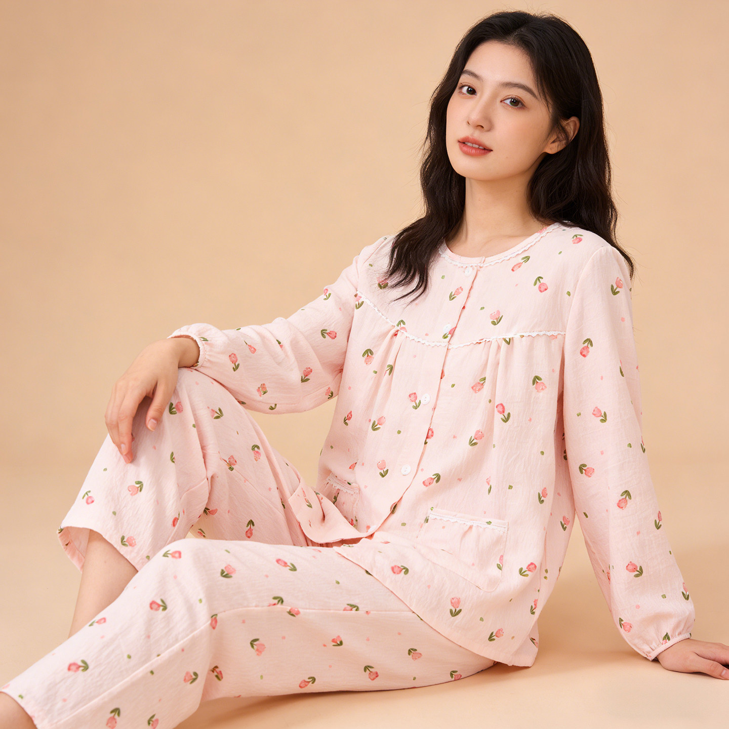 夏天长袖 都市丽人纯棉睡衣女款 秋春季 2026新款 甜美可爱家居服套装