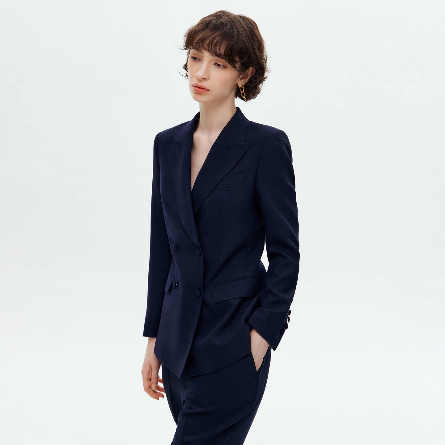 修身 VER 设计 西服外套直筒裤 套装 TOW张婧仪同款 藏青色双排扣西装由