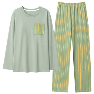 男士 春秋季 长袖 睡衣套装 家居服条纹夏冬天家居服青少年可外穿 大码由