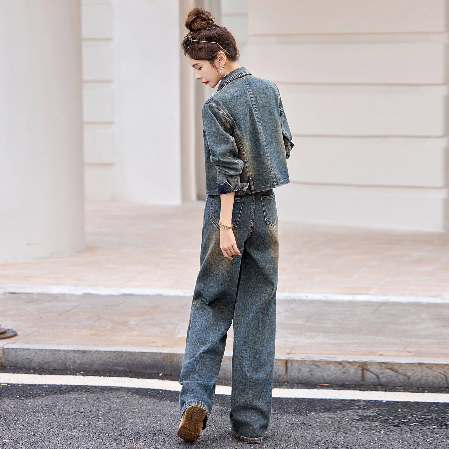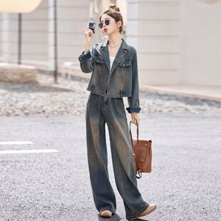 为您提供商品洋气减龄短款 牛仔套装 女2025春秋新款 时尚 小香风两件套 西服阔腿裤的详细介绍,