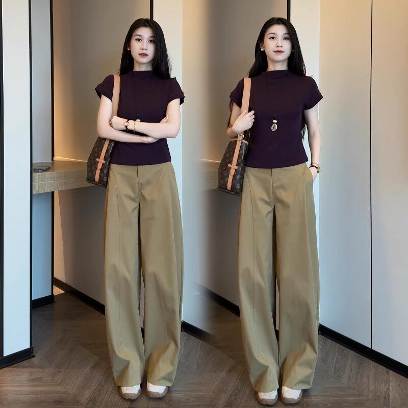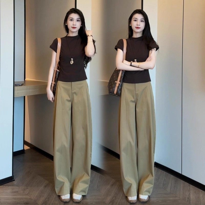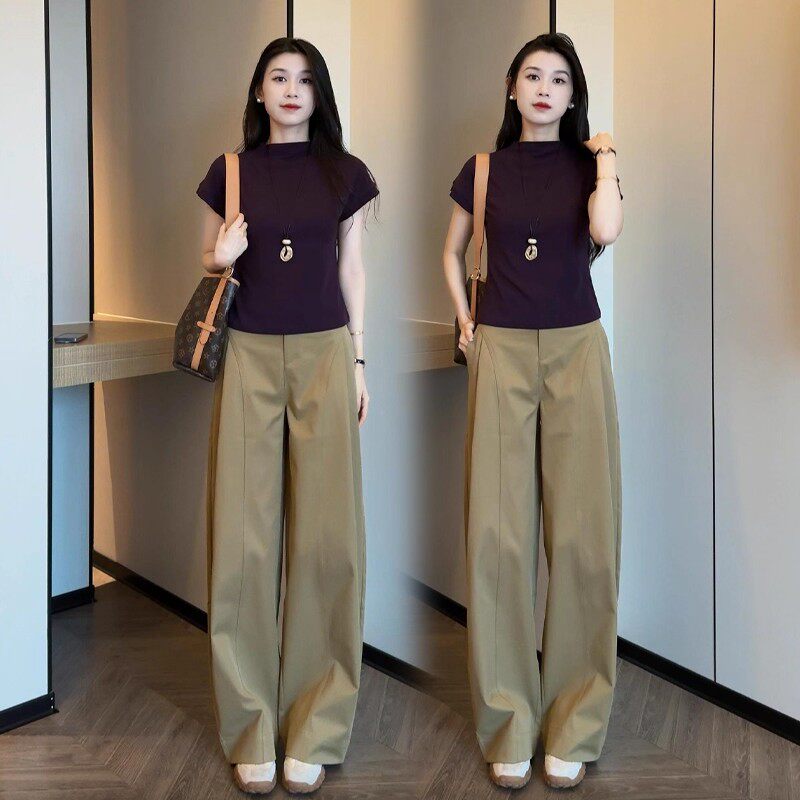 春秋时尚 女士2026新款 超火洋气显瘦上衣高腰阔腿裤 休闲两件套 套装由