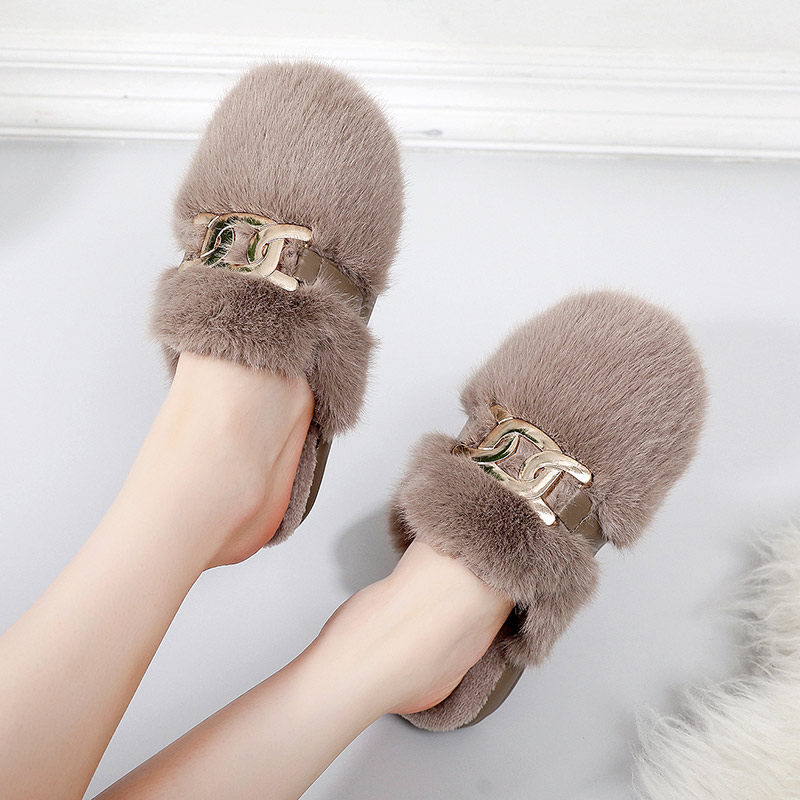 外穿防滑厚底居家保暖棉鞋 假日 女秋冬季 可爱米菲兔包跟加绒棉拖鞋