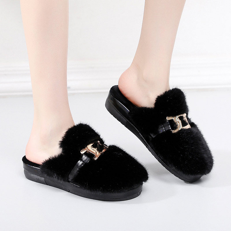 坡跟棉拖鞋 女室内软底加绒K防滑厚底保暖甜美优雅 秋冬季 极速时尚