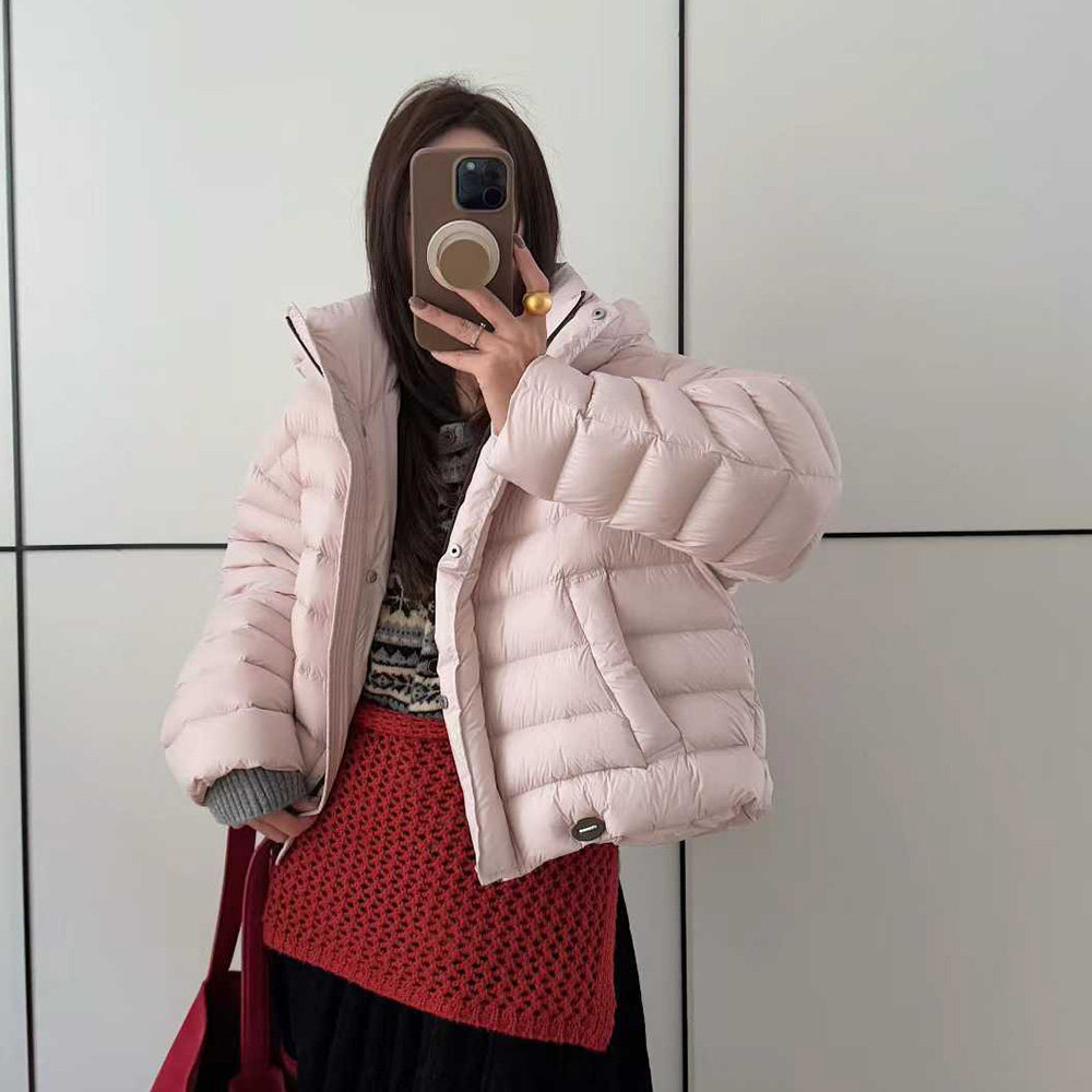 新款 云感鹅绒 波司登明星款 错格立领保暖外套 轻薄羽绒服女短款