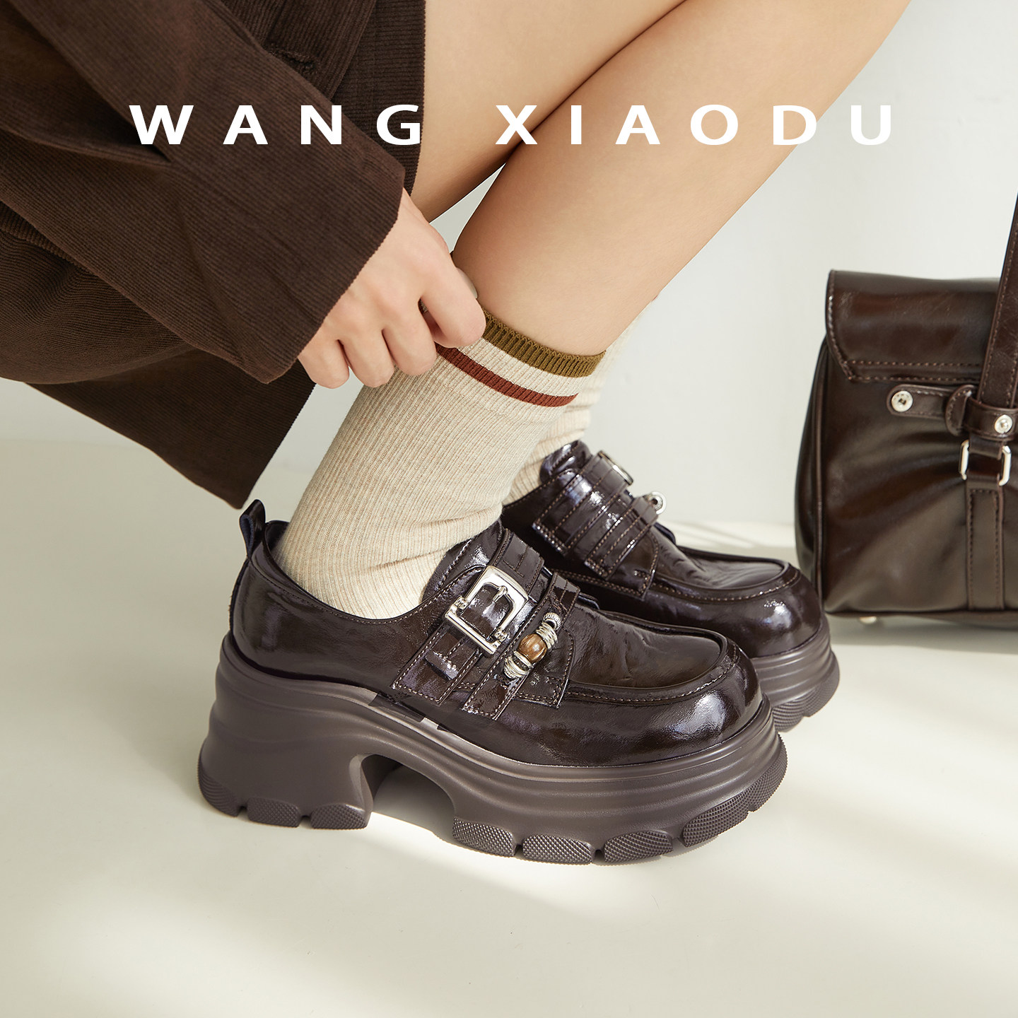 增高7.5cm 王小毒 星链传说 女方扣甜酷复古小皮鞋 厚底乐福鞋