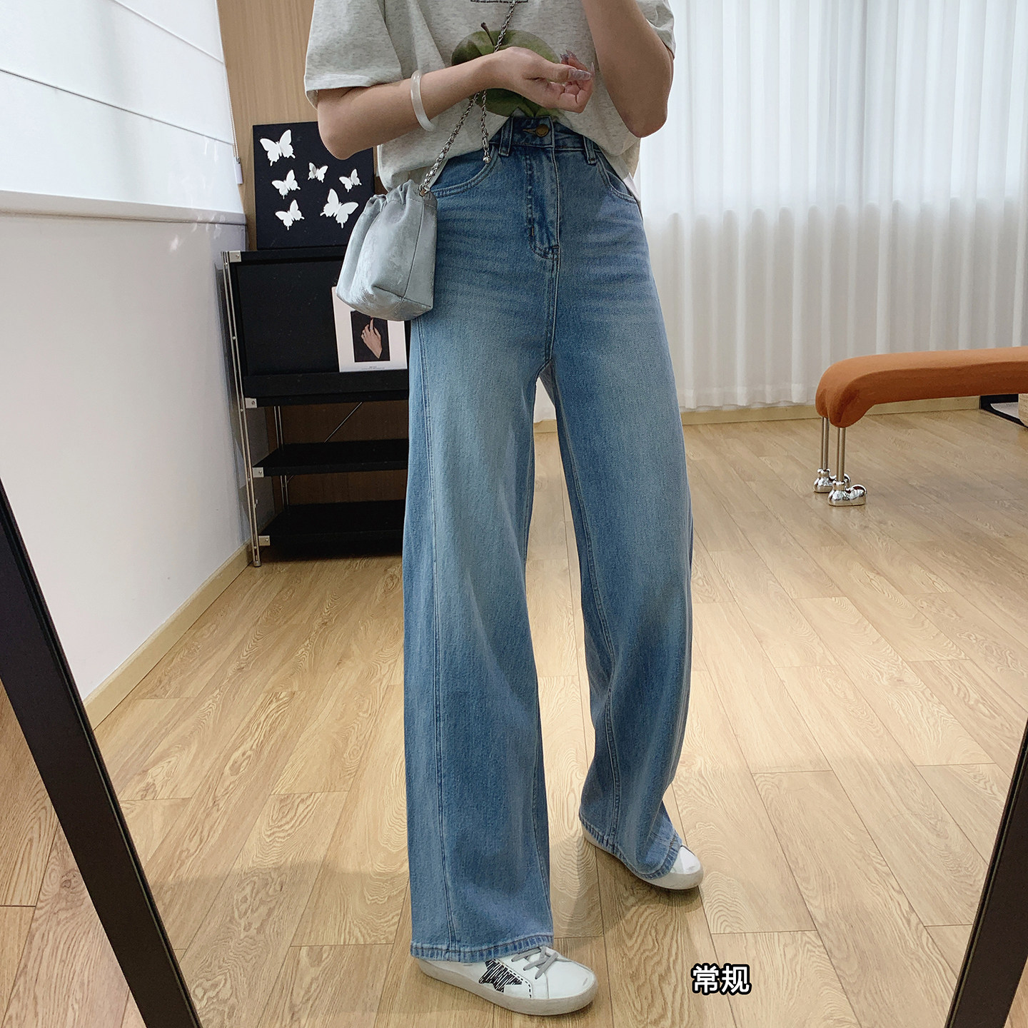 浅色水洗牛仔裤 GWIT 美式 垂感cleanfit春秋宽松直筒阔腿长裤 男士