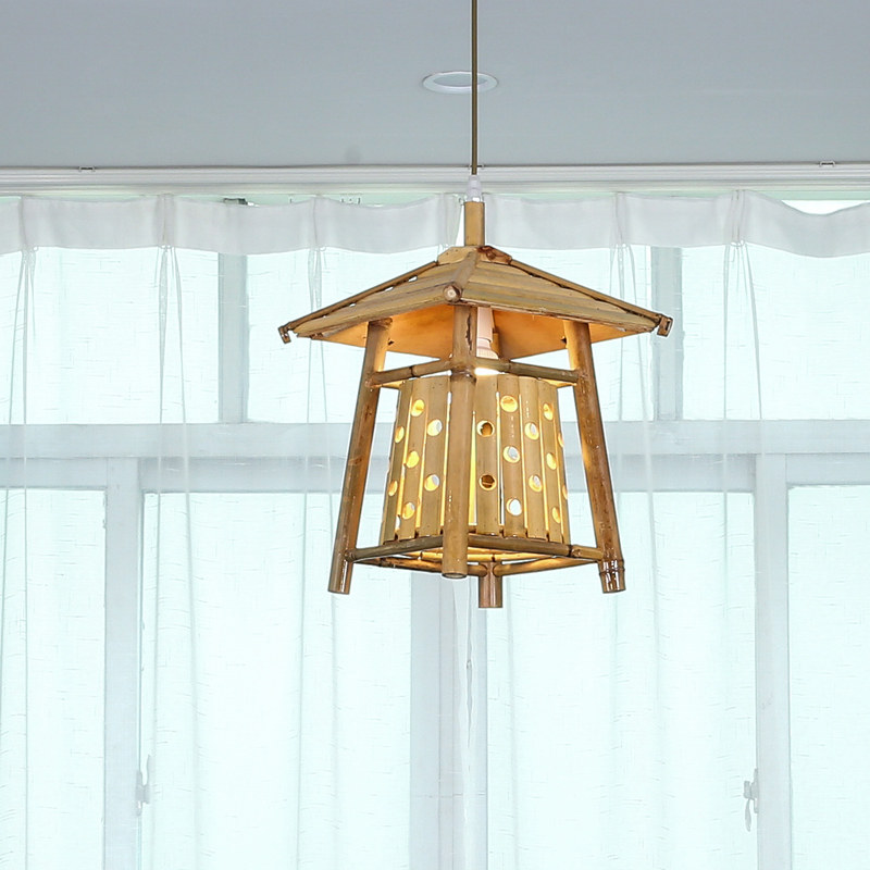 竹艺吊灯中式 民宿店铺手工竹房子灯饰 复古茶室餐厅阳台灯创意个性