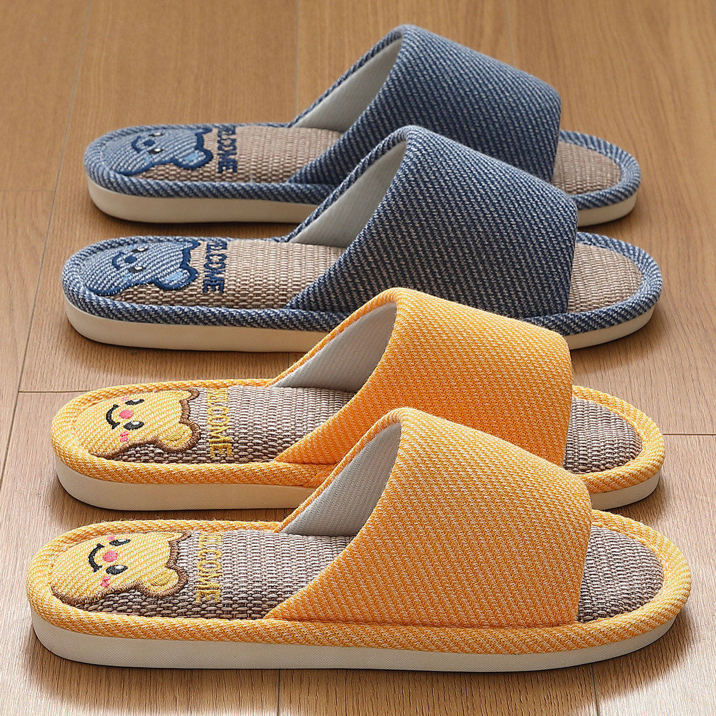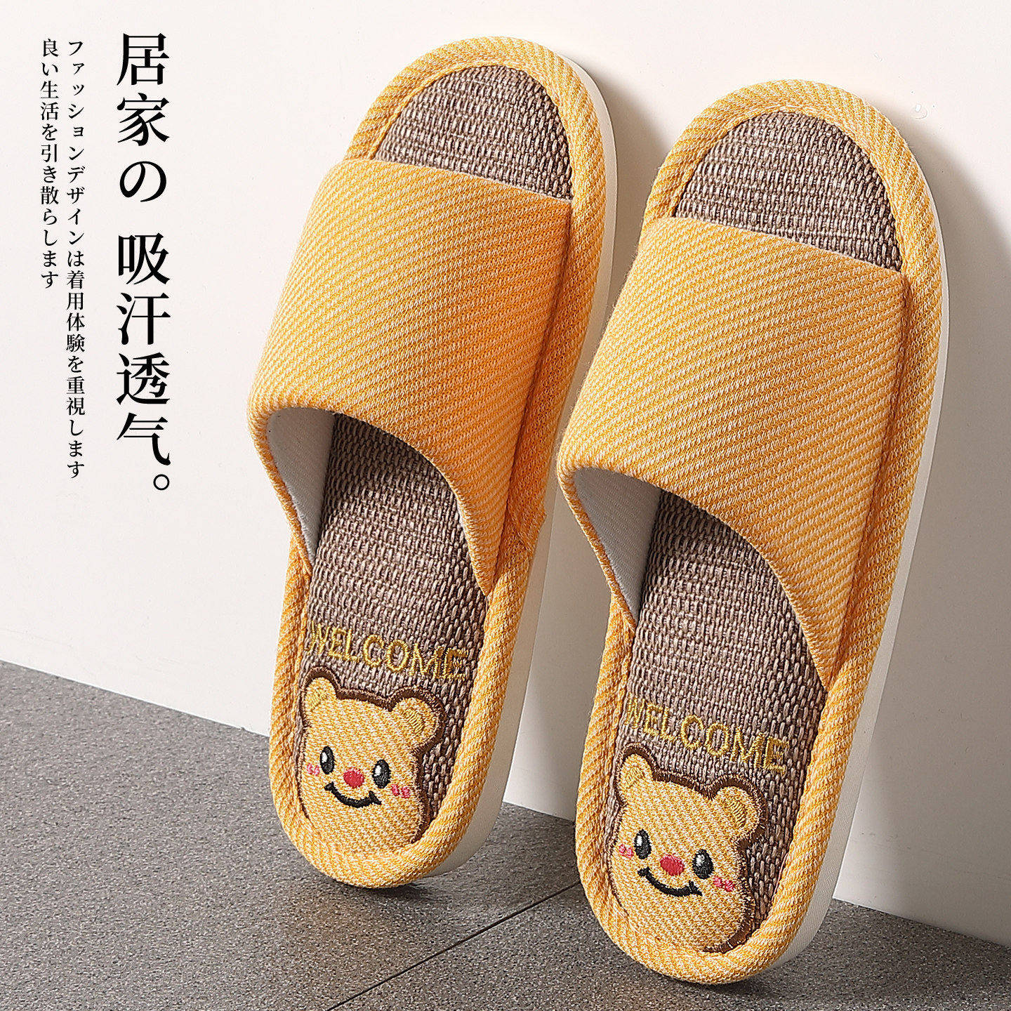 小熊亚麻拖鞋 夏天室内家居防滑防臭静音四季 棉麻布吸汗拖鞋 男 女款由