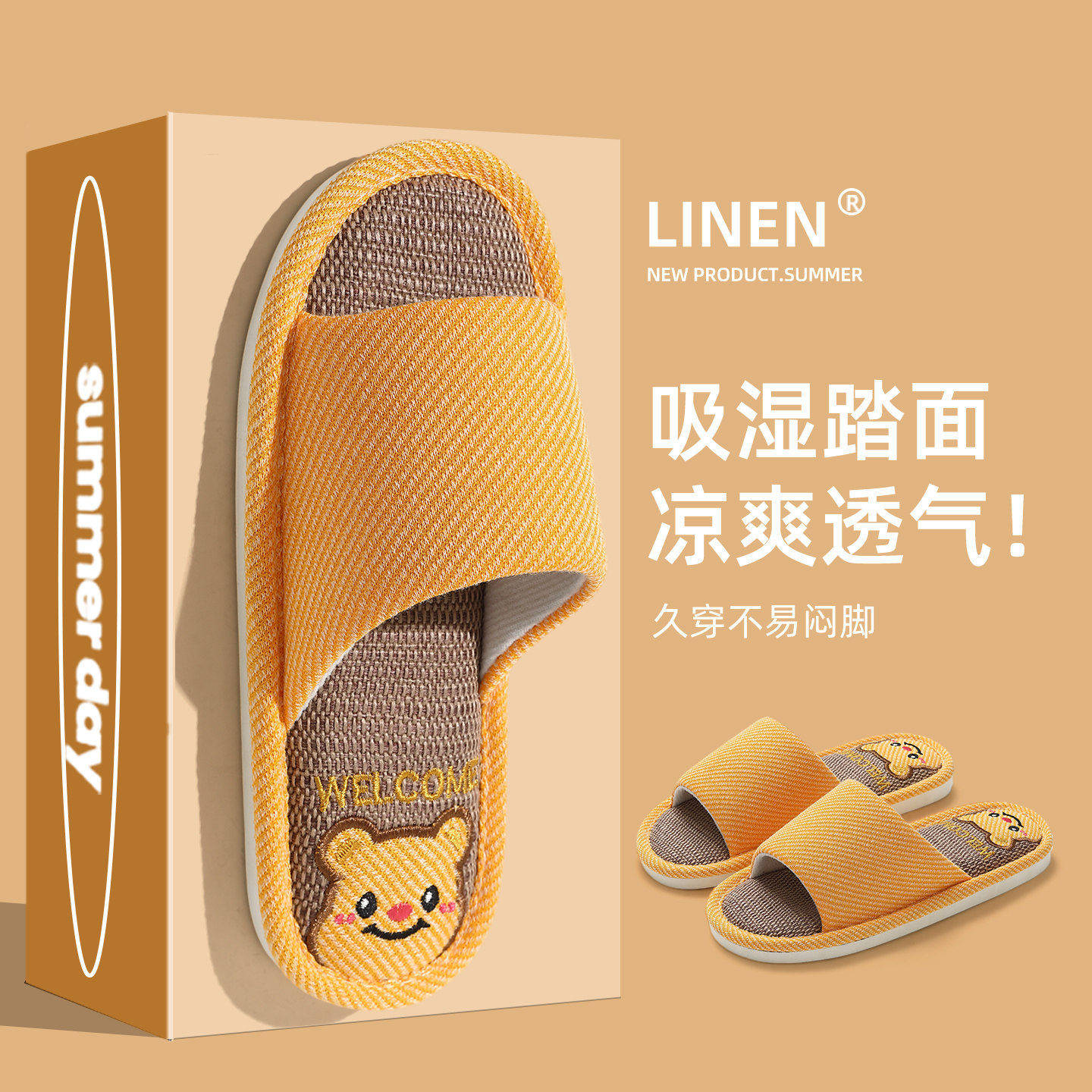 为您提供商品小熊亚麻拖鞋 夏天室内家居防滑防臭静音四季 棉麻布吸汗拖鞋 男 女款的详细介绍,